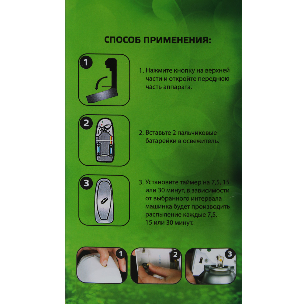 Диспенсер сам подскажет вам, когда необходимо заменить сменный баллон с помощью красного индикатора. Такой освежитель воздуха может быть использован в любом помещении в доме и квартире. Один баллон рассчитан до 60 дней использования.