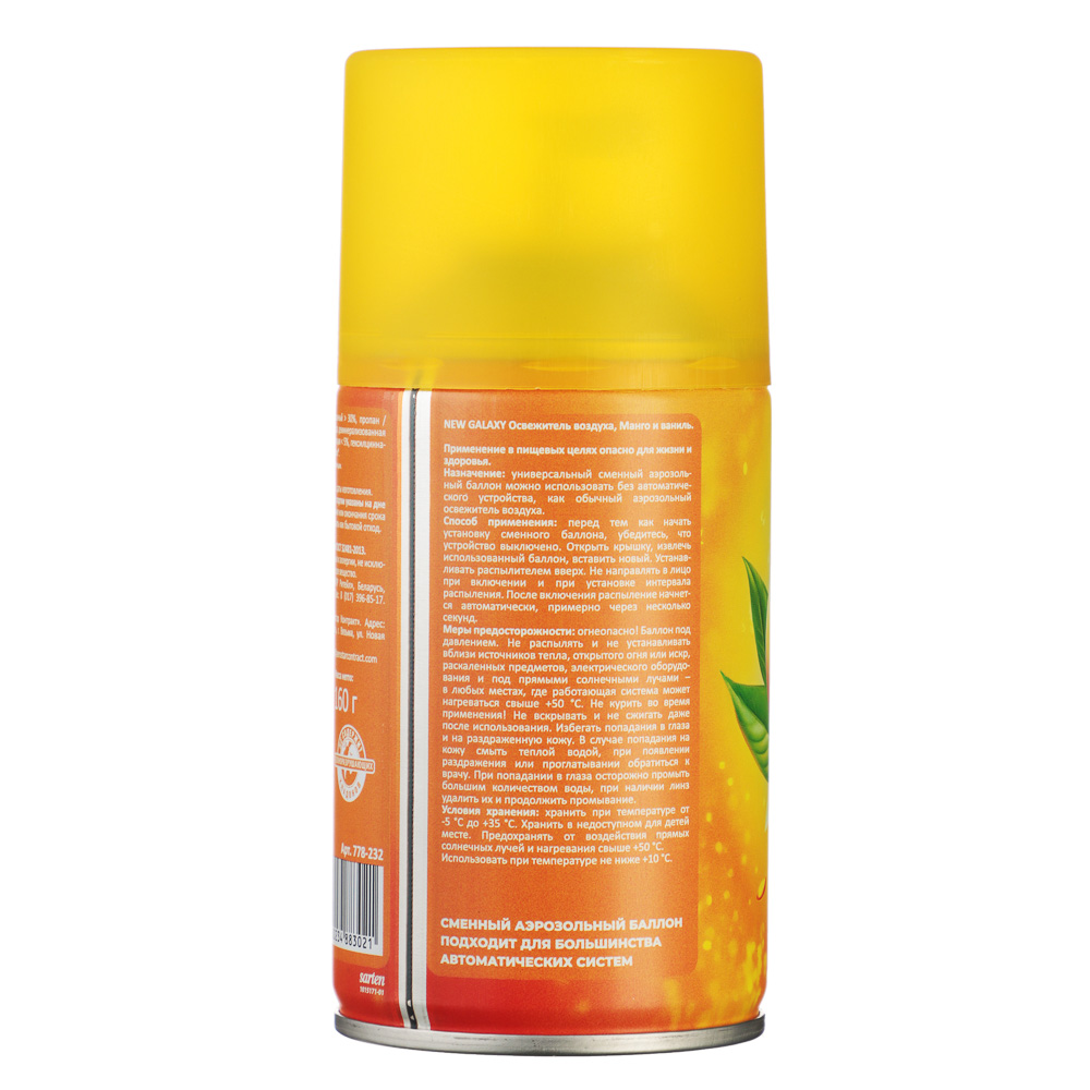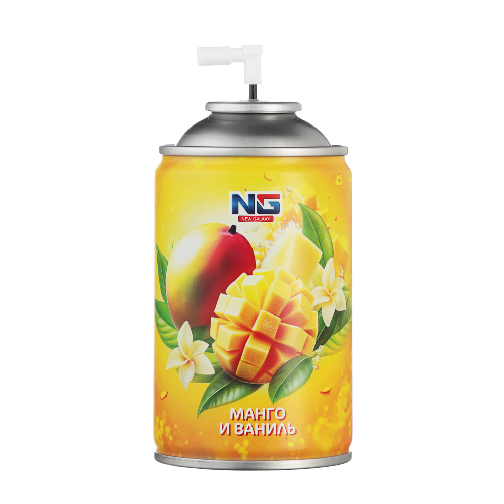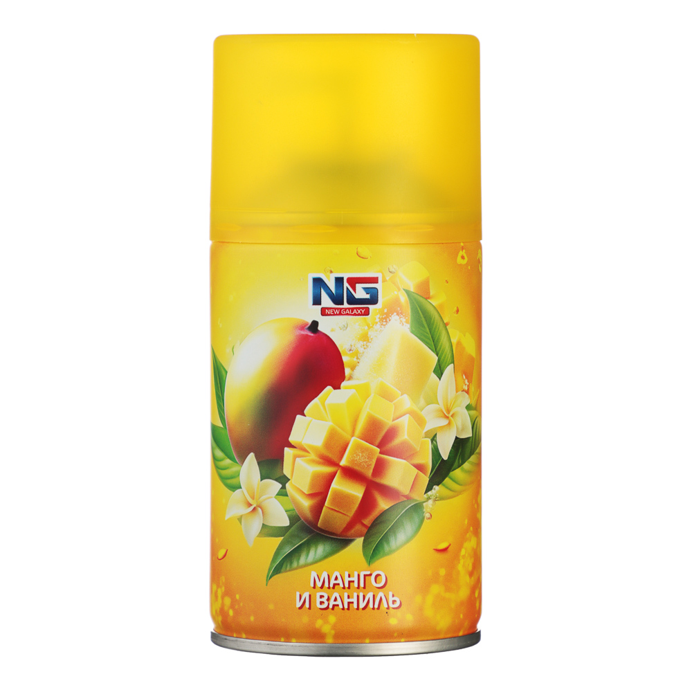 Освежитель воздуха для дома NEW GALAXY Автоматик 250 мл, Манго и ваниль – это свежий и приятный аромат, который наполнит ваш дом атмосферой тропического уюта. Освежитель с изысканным сочетанием сладких нот манго и нежного ванильного шлейфа создает ощущение комфорта и расслабления. Объем 250 мл гарантирует экономичный расход, а компактный дизайн делает его удобным для использования в любом помещении.