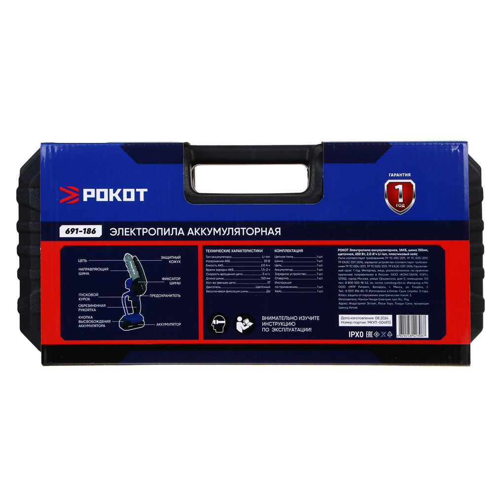 Электропила РОКОТ – надежный и удобный инструмент для выполнения различных задач по распиловке древесины. Оснащена щеточным двигателем мощностью 650 Вт и имеет длину шины 150 мм, что позволяет легко справляться с различными материалами. Преимущества электропилы РОКОТ включают автономность работы от аккумулятора, что позволяет использовать ее в любом месте без необходимости подключения к сети, а также долговечность благодаря литий-ионному аккумулятору, обеспечивающему длительное время работы без подзарядки. Идеально подходит для обрезки деревьев, строительных и ремонтных работ, обеспечивая комфорт и удобство в использовании.