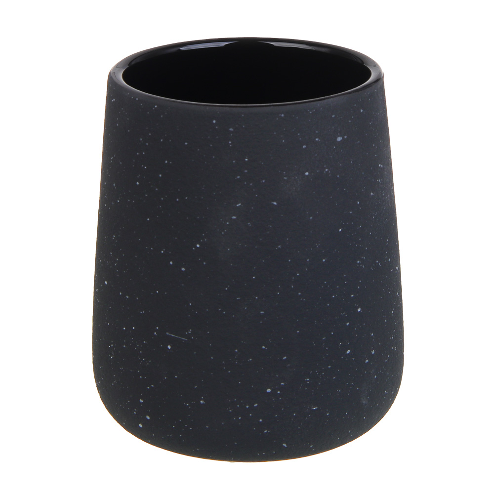 Стакан для ванной комнаты VETTA из коллекции "Крошка" – минималистичный и стильный аксессуар, который органично дополнит интерьер вашей ванной. Изготовленный из качественной керамики глубокого черного цвета, стакан объемом 400 мл (10,5×9×9 см) отличается лаконичным дизайном и практичностью. Его компактные размеры идеально подходят для хранения зубных щеток и других гигиенических принадлежностей, а прочная керамика гарантирует долговечность использования.