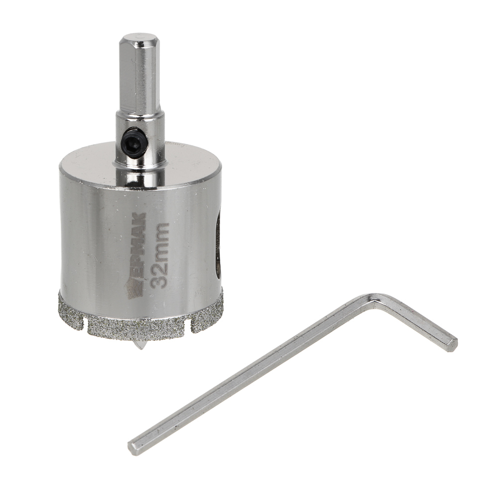 Алмазная коронка ЕРМАК диаметром 32 мм с центрирующим сверлом предназначена для точного и аккуратного сверления отверстий в керамике, стекле, кафельной плитке и других хрупких материалах. Благодаря алмазному напылению P45 она обеспечивает высокую скорость реза и длительный срок службы. Трехгранный хвостовик надежно фиксируется в дрели или перфораторе с функцией сверления, а центрирующее сверло помогает точно начать работу без смещения.