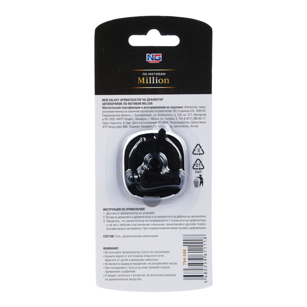 Миниатюрный ароматизатор на дефлектор NEW GALAXY Автопарфюм с ароматами по мотивам брендовой парфюмерии создан специально для современных автовладельцев и говорит о высоком статусе своего обладателя. Высокое качество автопарфюма гарантирует долгий и стойкий аромат. Линейка содержит ароматы для мужчин и для женщин. 4 аромата в ассортименте