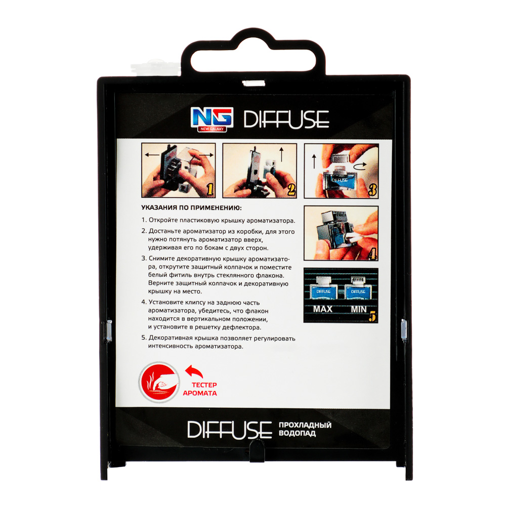 Ароматизатор в машину на дефлектор NEW GALAXY «Diffuse» с ароматом «Прохладный водопад» – это освежающий парфюмированный аромат, который подчеркнет индивидуальность, стиль и прекрасный вкус владельца автомобиля и создаст особую атмосферу в салоне машины. Легко и быстро устанавливается, имеет компактный размер и не мешает обзору во время вождения. Оптимальная степень насыщенности аромата не раздражает рецепторы, при этом отлично маскирует нежелательные запахи.