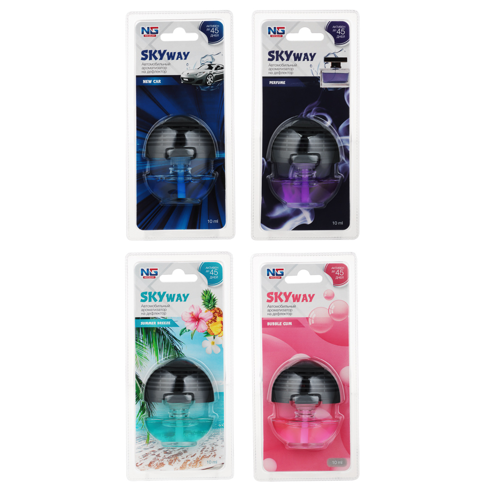 Ароматизатор на дефлектор NEW GALAXY «Skyway» предназначен для ароматизации салона автомобиля, поможет избавиться от неприятных запахов, создавая дополнительный комфорт во время езды. Имеет надежное и удобное крепление и компактный размер, не мешает водителю. Активен до 45 дней. 4 аромата в ассортименте: «Новая машина», «Парфюм», «Летний бриз», «Бабл гам».