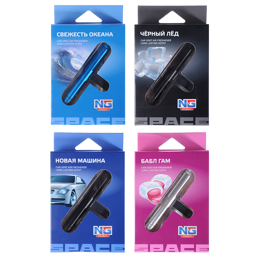 Ароматизатор на дефлектор NEW GALAXY Спейс имеет лаконичный стильный дизайн в миниатюрном корпусе со специальным креплением на вентиляционную решетку и приятный освежающий аромат длительного действия. Экономично расходуется и практически не занимает место в салоне автомобиля. 4 аромата в ассортименте: бабл гам, новая машина, черный лед, океанская свежесть.