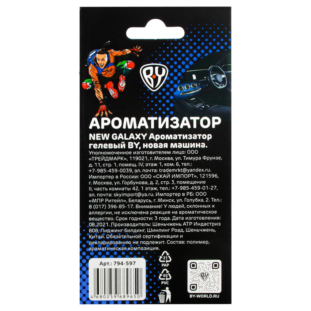 Гелевый ароматизатор воздуха для автомобиля NEW GALAXY BY Новая машина наполнит салон транспортного средства приятным ароматом. Аксессуар имеет подвесное крепление на шнурок, смотрится лаконично и напоминает брелок. Благодаря гелевому составу ароматизация происходит постепенно и равномерно.