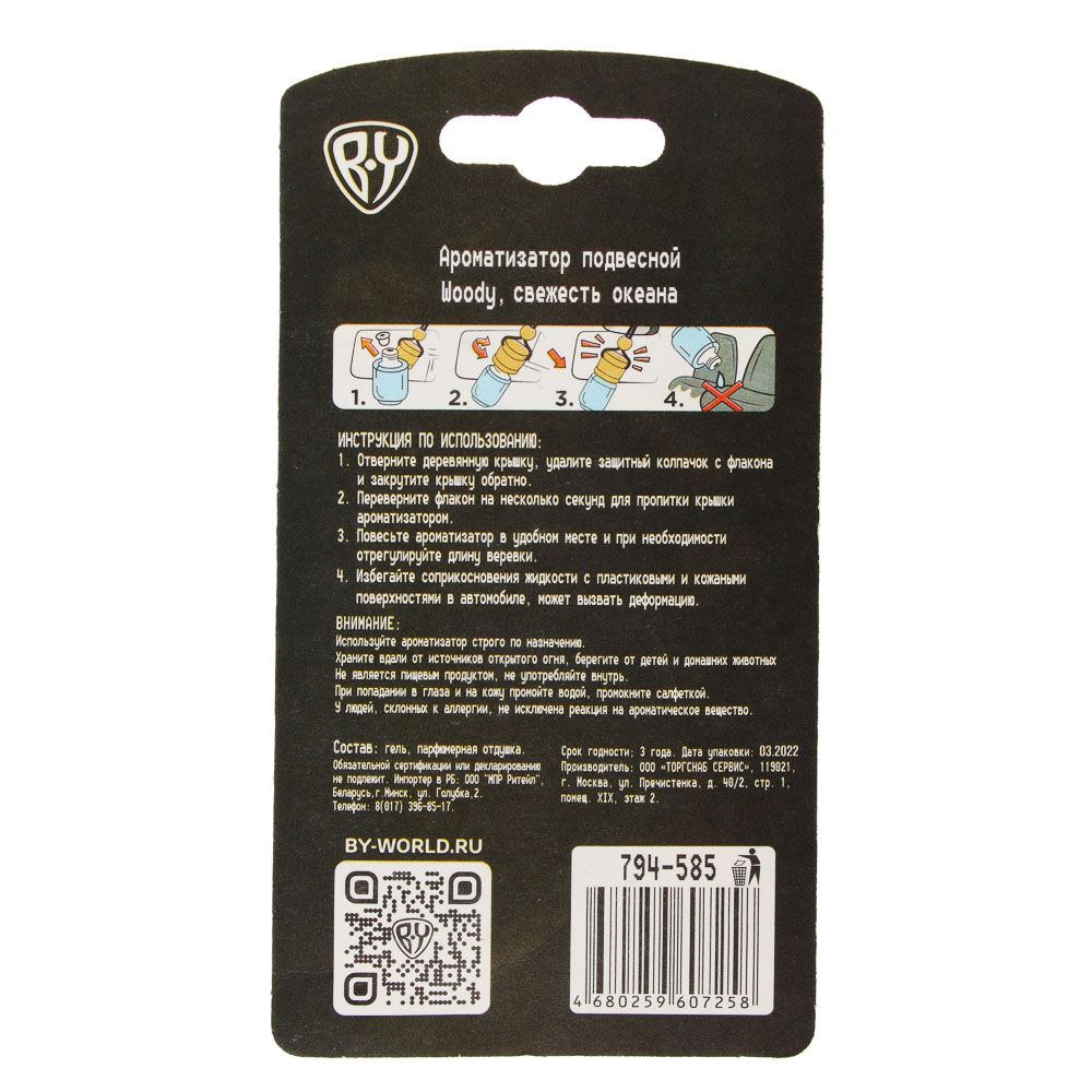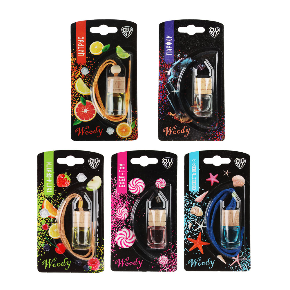 Чтобы наслаждаться каждой поездкой в своем авто, нужно просто подобрать качественный ароматизатор. Подвесной ароматизатор BY WOODY создаст комфортный микроклимат в салоне автомобиля и задаст настроение поездке. Жидкий ароматизатор эффективен в любое время года, так как не замерзает. Доступные ароматы: парфюм, цитрус, бабл гам, тутти фрутти и свежесть океана.