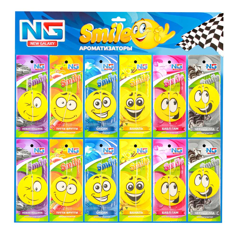 Автомобильный ароматизатор "Смайл" с миксом ароматов (794-412) выполнен из плотной бумаги и пропитан парфюмированым средством. В обиходе этот вид ароматизаторов еще называют "елочка". Такой освежитель воздуха может располагаться в любом месте машины и обеспечивать в салоне приятный аромат и нейтрализацию посторонних запахов на длительное время.