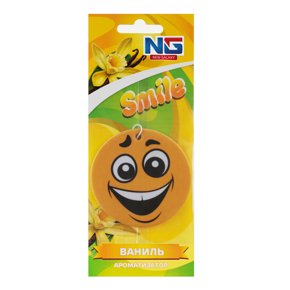 Автомобильный ароматизатор "Смайл" с ароматом ваниль выполнен из плотной бумаги и пропитан парфюмированым средством. В обиходе этот вид ароматизаторов еще называют "елочка". Такой освежитель воздуха может располагаться в любом месте машины и обеспечивать в салоне приятный аромат и нейтрализацию посторонних запахов на длительное время.