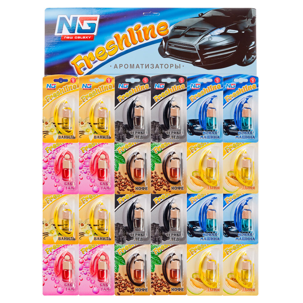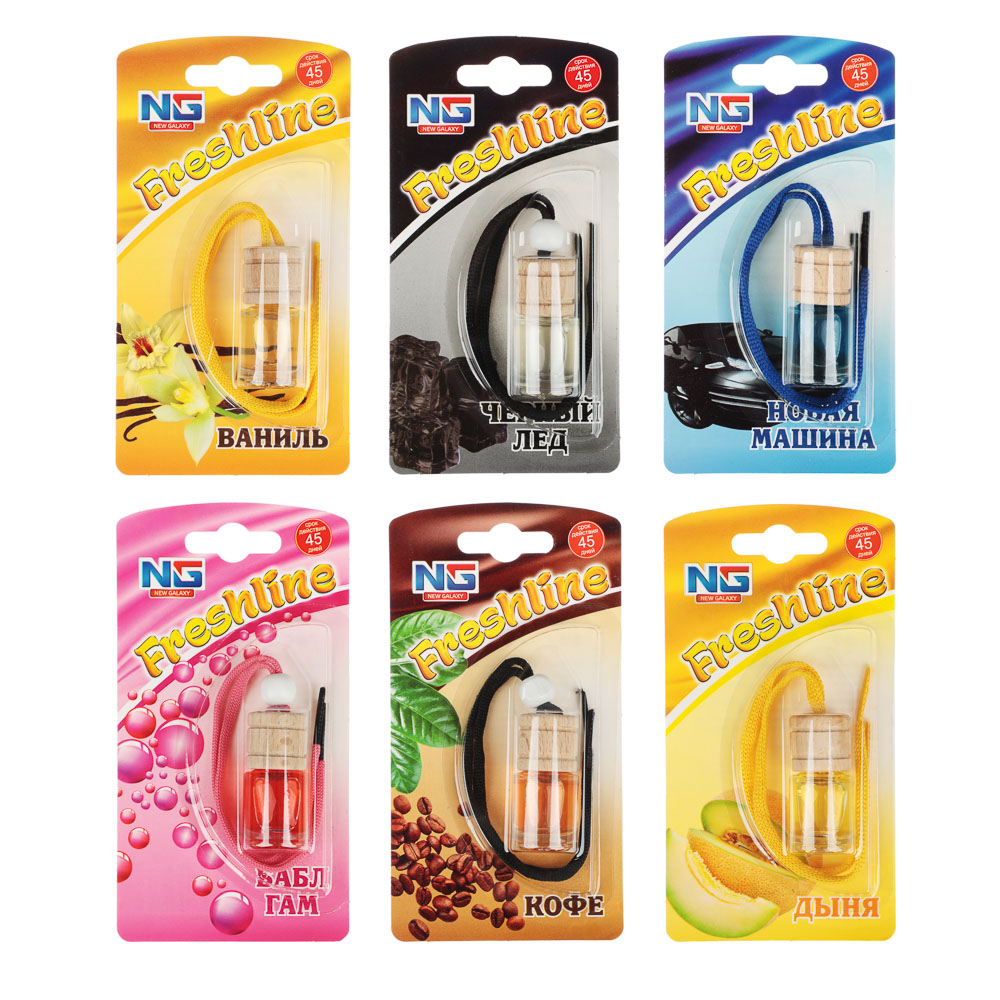 Ароматизатор для автомобиля «FRESHLINE» от NEW GALAXY обеспечит приятный аромат в салоне автомобиля и нейтрализует неприятные запахи на протяжении длительного времени. Подвесной флакон в прозрачной колбе имеет компактный размер и не мешает во время поездки. Стойкий и приятный аромат подарит комфорт водителю и пассажирам. Широкая линейка ароматов позволит подобрать подходящий вариант для каждого.