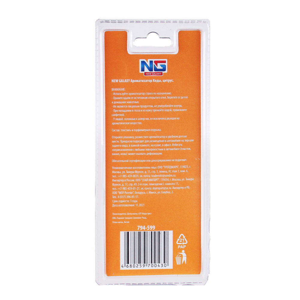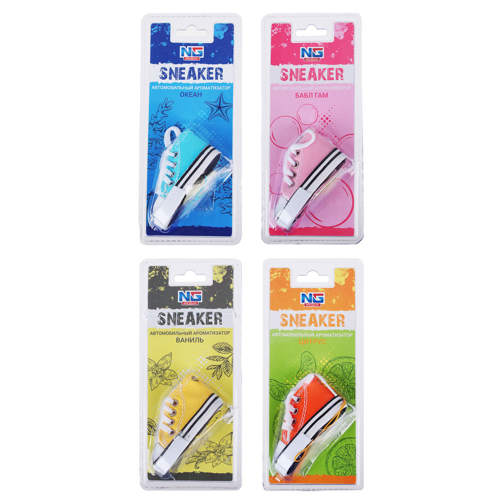 Ароматизатор NEW GALAXY «Кеды» – это стильный аксессуар для автомобиля на веревочке, который вешается на зеркало заднего вида. Компактное изделие не мешает обзору во время вождения. Дополнит интерьер салона авто и будет эффективно освежать воздух, устраняя неприятные запахи. Ароматизатор может также использоваться в ванной комнате, в офисе или на кухне. Послужит приятным сувенирным подарком для автовладельца. Доступные ароматы: цитрус, океан, ваниль, бабл гам.