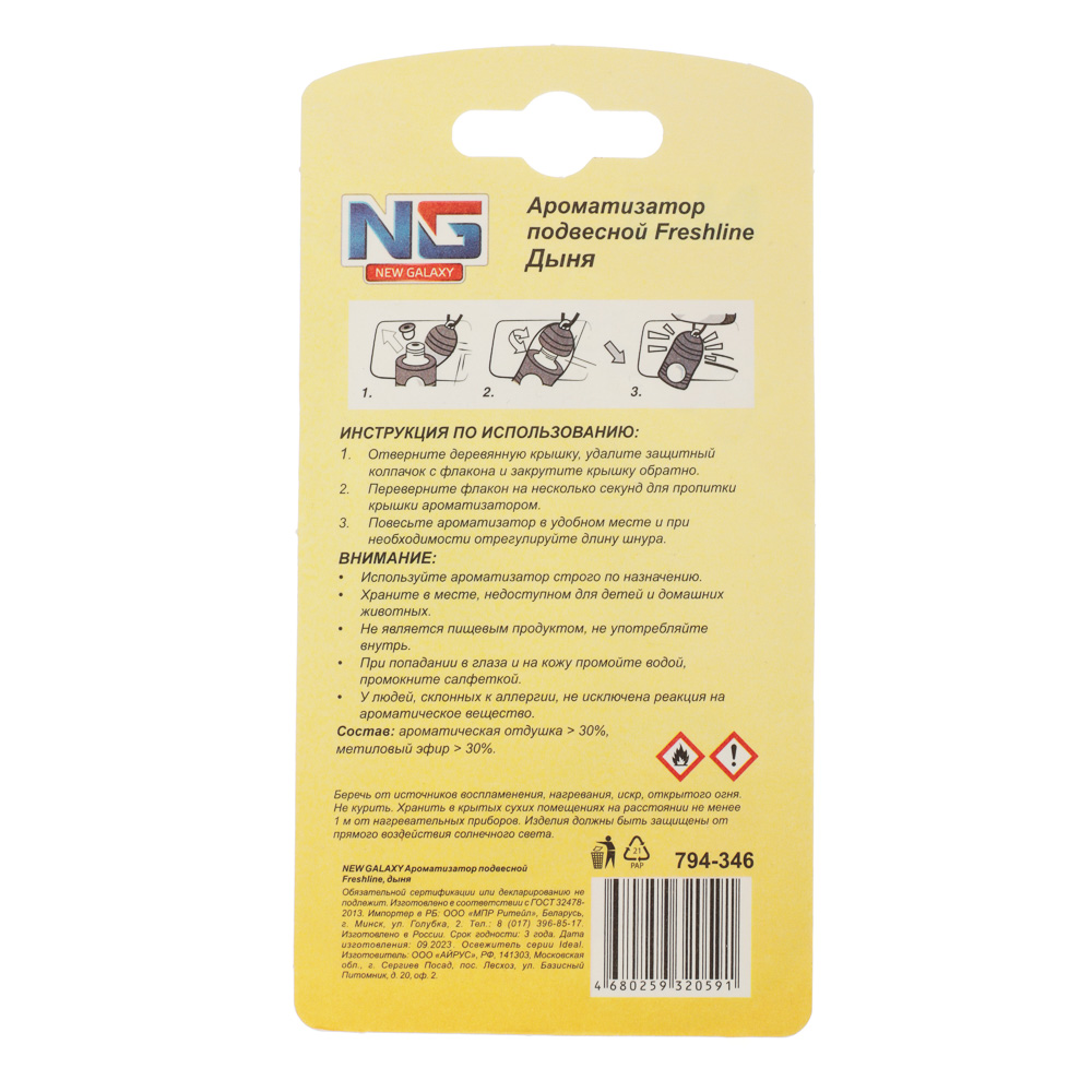 NEW GALAXY Ароматизатор подвесной Freshline дыня, 5 мл