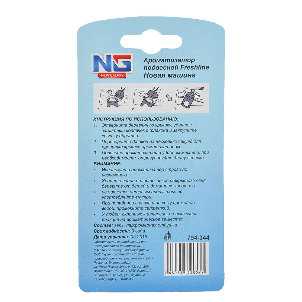 NEW GALAXY Ароматизатор подвесной гелевый Racer 5мл, на листе 18 шт.