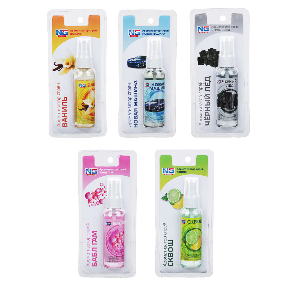 Ароматизатор воздуха NEW GALAXY в виде спрея позволит создать приятную ароматную атмосферу в нужный момент. При помощи спрея можно легко контролировать степень интенсивности аромата до нужного вам уровня. Нотки любимого аромата быстро насыщают воздух, маскируя неприятные запахи. В составе – только качественные отдушки. 5 ароматов в ассортименте.
