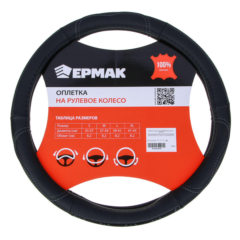 ЕРМАК Оплетка руля, вставка ЕРМАК серая, черный (М), искусственная кожа