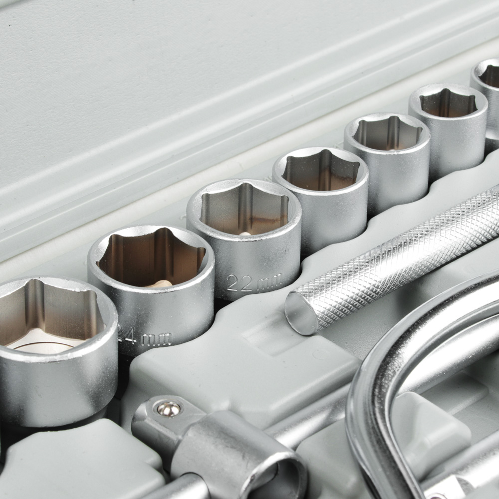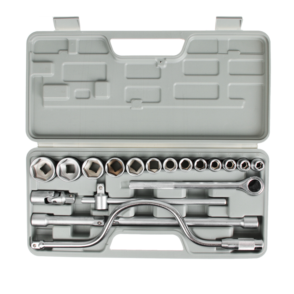 Набор головок ЕРМАК — базовый комплект с самыми популярными размерами торцевых головок и вспомогательными инструментами для закручивания и откручивания гаек, болтов, винтов и прочих крепежных элементов.Состав набора: вороток Т-образный 1/2″, головки торцевые 1/2″, 13 шт.: 10; 11; 12; 13 ;14; 15; 17; 19; 22; 24; 27; 30; 32 мм, ключ трещоточный 1/2″, удлинитель 1/2″ 200 мм.