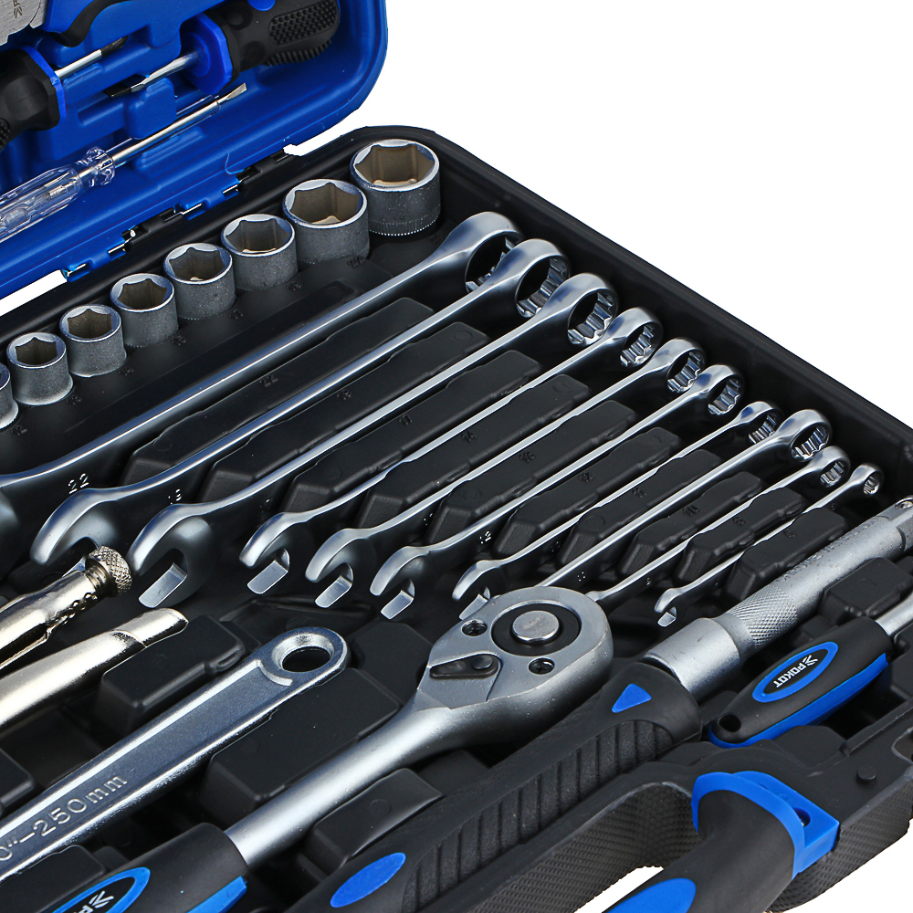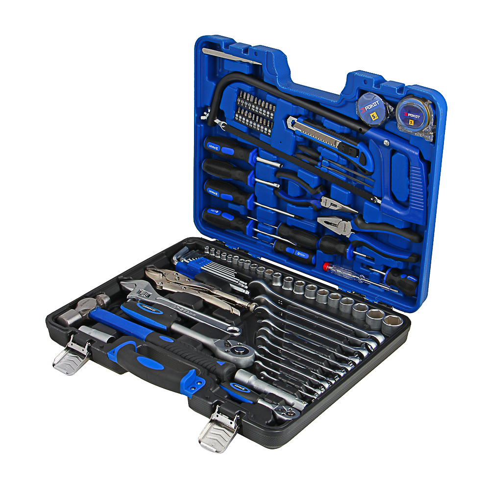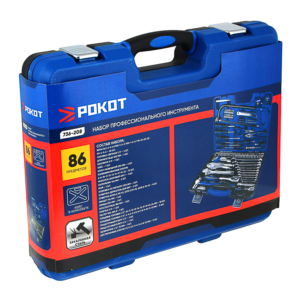 Набор профессионального инструмента РОКОТ в чехле включает 86 предметов и предназначен для монтажа и демонтажа резьбовых соединений. В комплекте имеются разные типы отверток с держателями для бит, трещоточный ключ, адаптеры для бит, головки и биты разных размеров. Все металлические элементы выполнены из высококачественной хромованадиевой стали, устойчивой к износу и коррозии. Набор может стать отличным подарком для мастера.