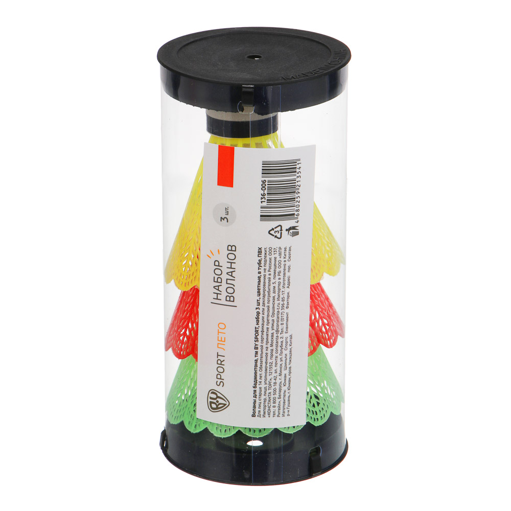 Воланы для бадминтона, тм BY SPORT, набор 3шт, цветные, в тубе, ПВХ