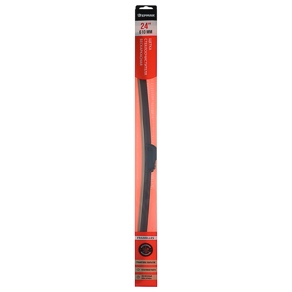 Нужна надежная щетка стеклоочистителя? Бескаркасная щетка стеклоочистителя 610 мм имеет небольшой вес, улучшенную аэродинамику, а чистящая лента имеет графитовое покрытие, которое продлевает срок службы изделия. Качественная конструкция гарантирует надежную фиксацию щетки и максимальный комфорт во время езды – щетка не шумит и отлично очищает лобовое стекло.