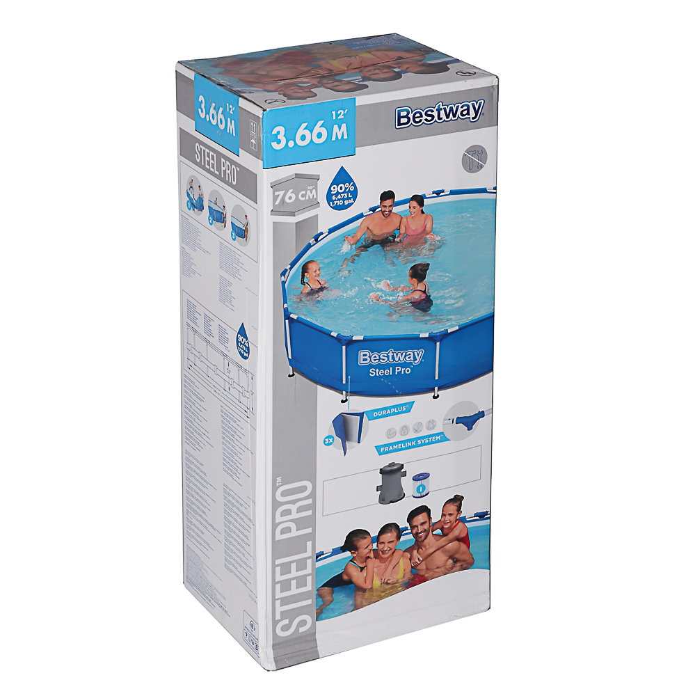 Каркасный бассейн Bestway 56681 отличается высокой прочностью и устойчивостью. Чаша выполнена из высококачественного трехслойного ПВХ: два слоя плотного винила и между ними сетка из полиэстера для особой прочности. Цвет чаши бассейна снаружи синий. Каркас металлический, покрытый предотвращающим появление коррозии слоем пластика. Не требует бетонирования и подготовки ямы, все, что нужно, это плоская, горизонтальная площадка. Сезонный бассейн (рекомендуется разбирать на холодное время года) обладает простой конструкцией - может быть легко разобран и собран заново. Время сборки и подключения бассейна составляет около 20 мин. Удобный сливной клапан позволяет присоединить садовый шланг, что дает возможность слить воду в любое место. В комплект поставки входят фильтр-насос производительностью 1249 л/ч для очистки и циркуляции воды, картридж, шланги и хомуты, необходимые для подключения к бассейну.