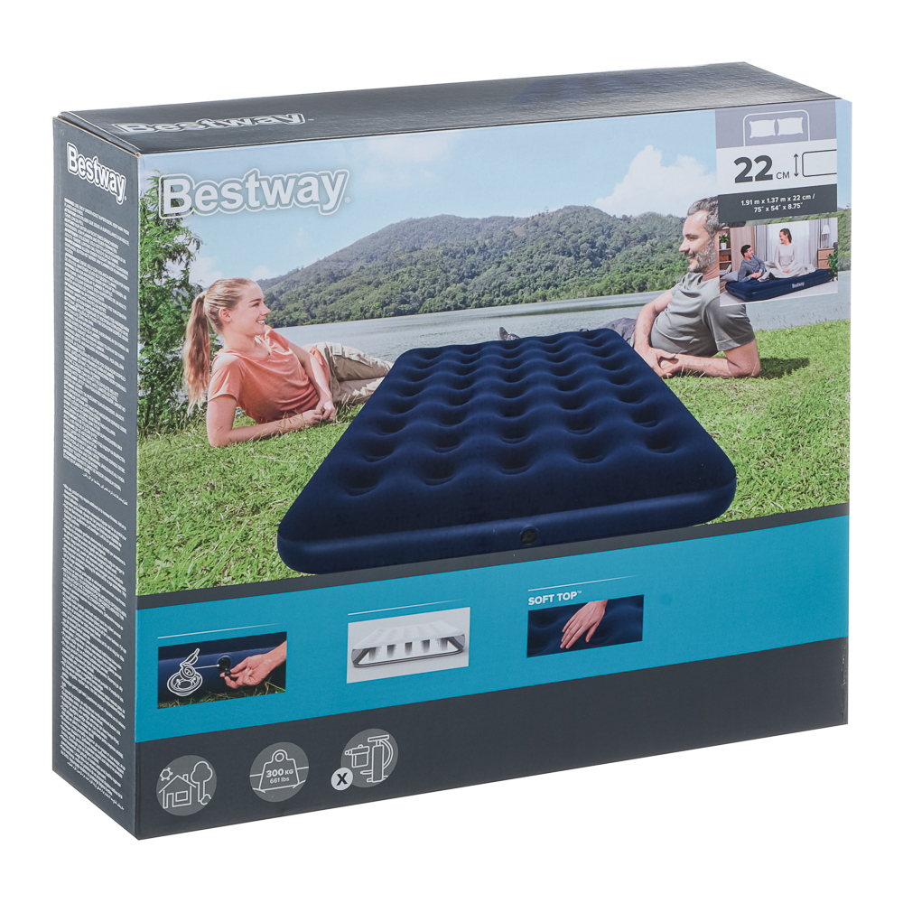 Надувная кровать BESTWAY «Full» 191х137х22 см – это двухместный матрас, который подарит качественный комфортный сон во время туристических походов, рыбалки или отдыха на природе. Изделие выполнено из плотного износостойкого материала с усиленными внутренними перегородками по технологии COIL BEAM CONSTRUCTION. Универсальный клапан обладает 100% герметичностью и подходит для любых типов насосов. Флокированное покрытие не дает препятствует соскальзыванию постельного белья.