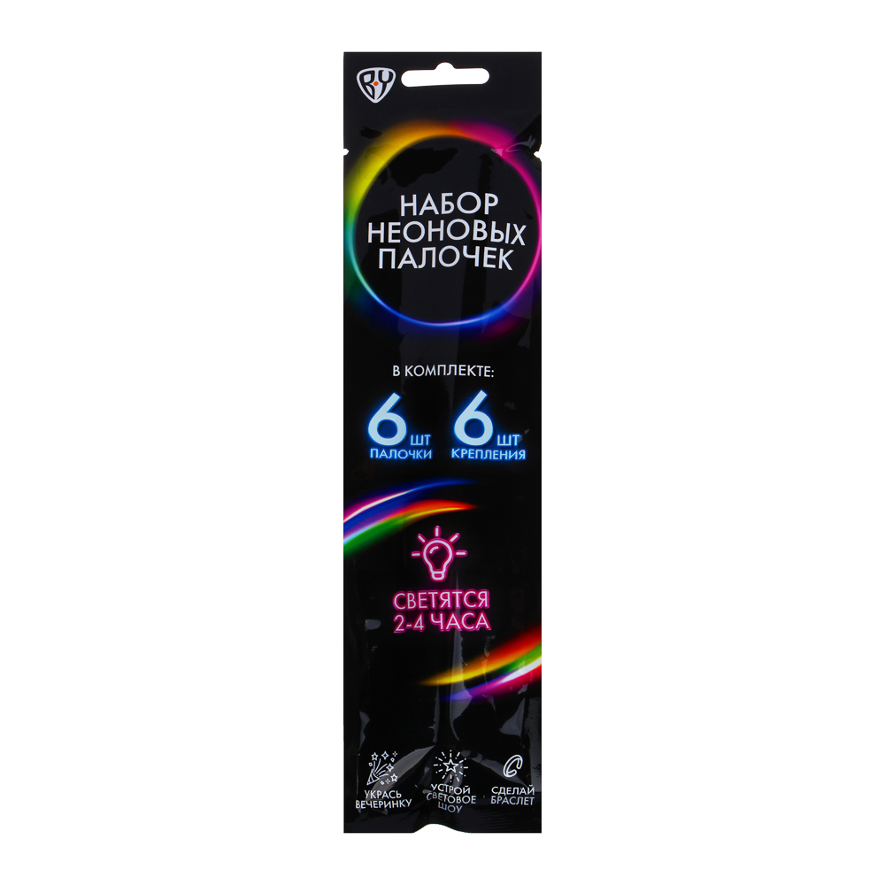 Светящиеся в темноте неоновые палочки от BY - незаменимый аксессуар для любой вечеринки. В упаковке 6 палочек, микс цветов. Для того, чтобы палочка начала светиться, переломите ее в нескольких местах для запуска химической реакции. Отличный аксессуар для любой вечеринки, светящиеся палочки для праздника. Время свечения зависит от температуры окружающей среды. Время работы примерно 6 часов, после этого времени интенсивность может уменьшиться. Благодаря пластиковым крепежам в наборе можно сделать светящийся браслет. Набор неоновых палочек поможет создать яркий декор интерьера или праздничный образ. Размере палочки 20х0,5 см.