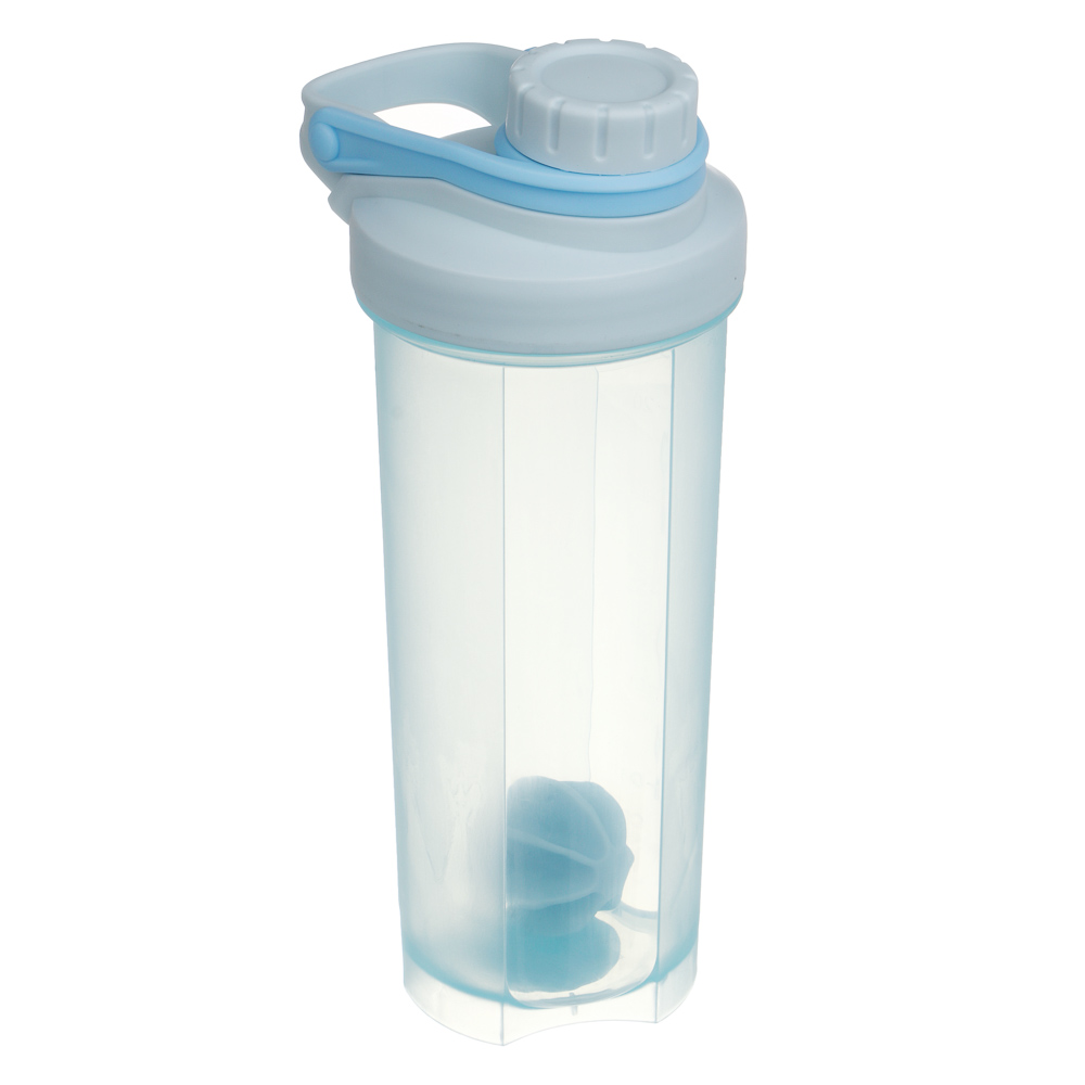 Шейкер спортивный BY SPORT объёмом 700 мл и размером 24х11 см рассчитан на приготовление протеиновых коктейлей большого объёма. Внутри пластиковый шарик с глубокими ребрами, который эффективно разбивает комочки сухих смесей при встряхивании. Полупрозрачный корпус из пластика позволяет визуально контролировать консистенцию и количество напитка. Герметичная крышка плотно закручивается и не протекает, поэтому шейкер можно носить с собой в рюкзаке. Удобная насадка для питья позволяет употреблять напитки на ходу.