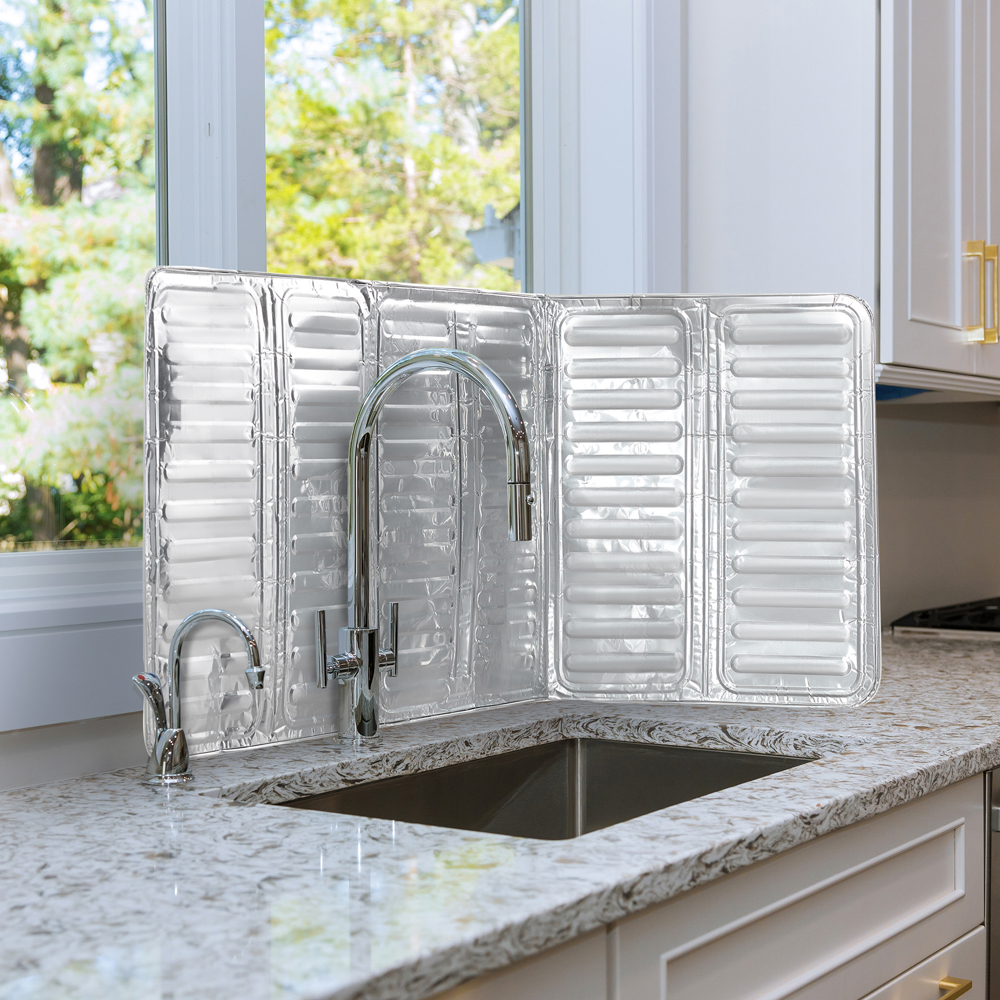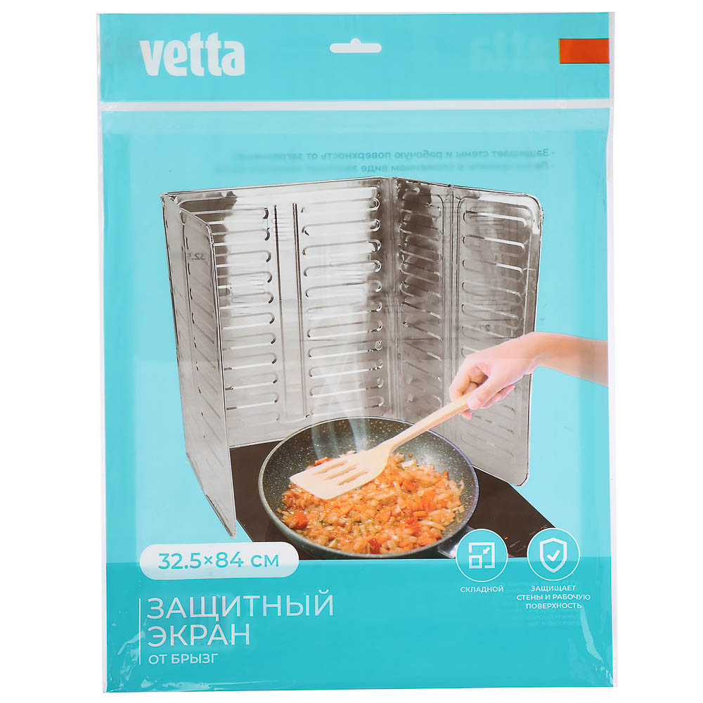 Во время жарки капли жира разбрызгиваются по сторонам, загрязняя кухню. Чтобы уберечь стены, рабочую поверхность и фартук от загрязнений используйте специальный Защитный экран от брызг VETTA. Изделие из алюминия имеет оптимальный размер, огнеупорное и легко устанавливается на плиту. Экран не царапает варочную поверхность, легко отмывается, компактный в сложенном виде.
