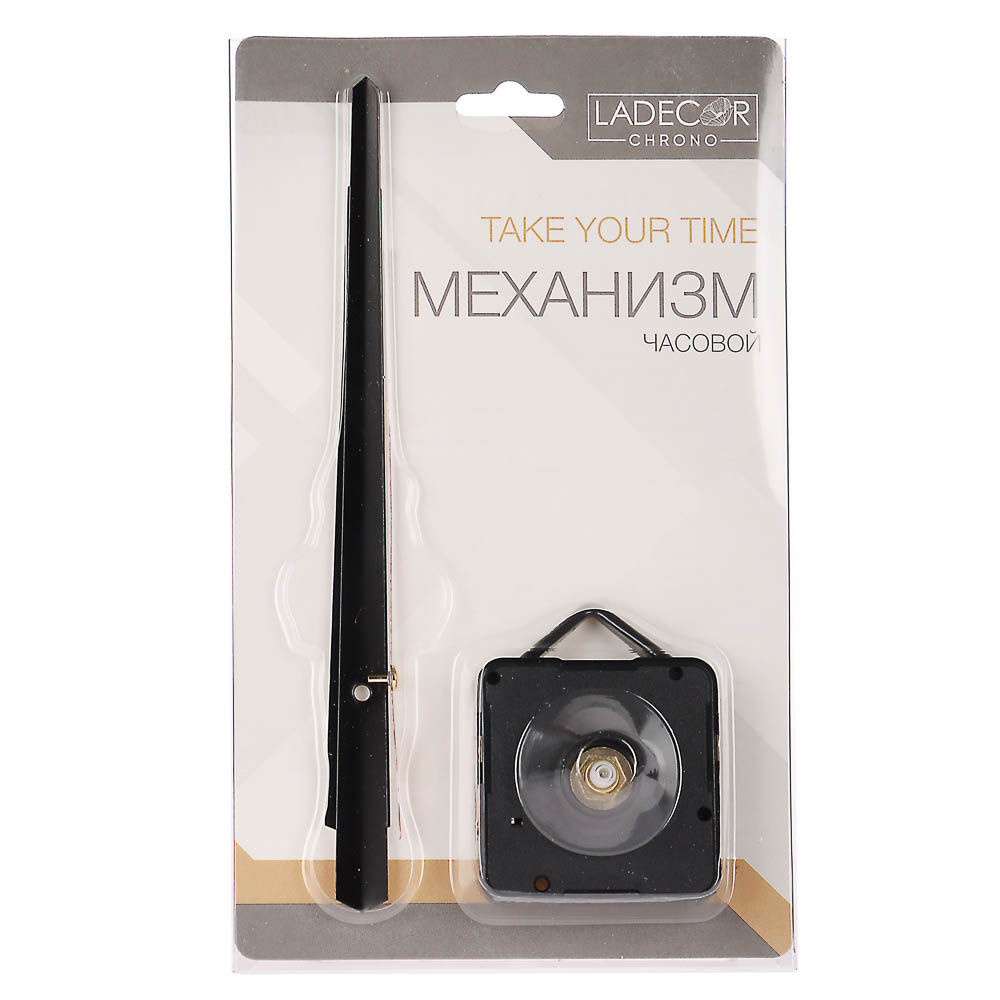 Часовой механизм LADECOR CHRONO с плавным ходом. Его используют, чтобы сделать часы на стене - прикрепить механизм и нарисовать или наклеить цифры. Можно использовать для замены часового механизма в часах подходящего размера. Работает беззвучно - подходит для спален и офисов. Размер 13,1-14,3 см. Три вида со стрелками разного дизайна: выберите подходящий.