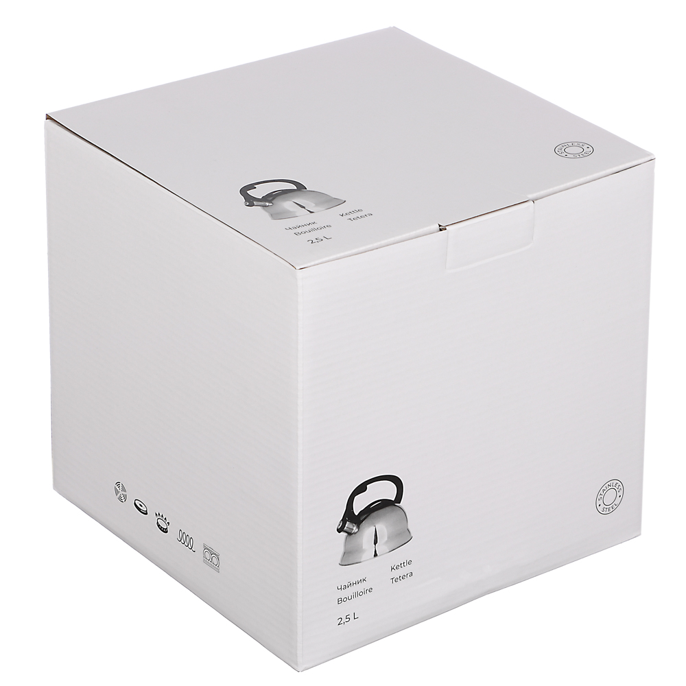 Чайник стальной "Корсика" объёмом 2,5 л предназначен для использования на всех типах плит, включая индукционные. Модель оснащена свистком, клапан которого открывается нажатием кнопки на ручке для безопасного доступа. Чайник допускает мытьё в посудомоечной машине. Корпус выполнен из нержавеющей стали. Объём 2,5 л оптимален для приготовления горячих напитков для семьи или компании. Ручка из термостойкого материала обеспечивает безопасное использование.