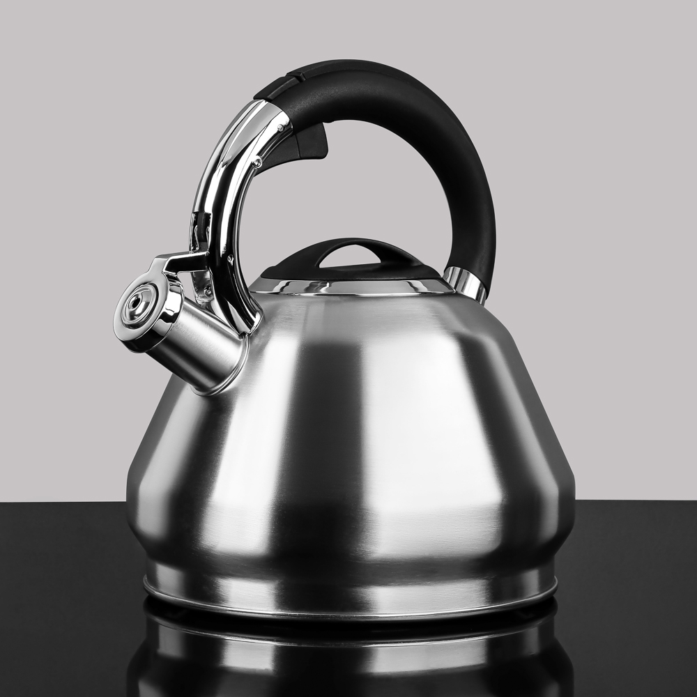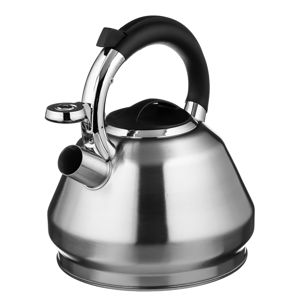Стальной чайник "Ками" от VETTA объемом 2,7 л - отличный помощник на вашей кухне! Подходит для всех видов плит, включая индукционные. Это качественный и стильный чайник, который отлично подойдет для приготовления горячих напитков в домашних условиях. Чайник выполнен из нержавеющей стали, которая обеспечивает долговечность и надежность использования. Дизайн чайника очень эффектный, благодаря чему он станет ярким элементом интерьера кухни. Важно отметить, что чайник VETTA оснащен индукционным дном, что позволяет быстро и равномерно нагревать воду, а также экономить время и энергию. Это делает его идеальным выбором для тех, кто ценит комфорт и практичность в использовании кухонной утвари.Особенности:• материал - нержавеющая сталь;• кнопка для открывания свистка на ручке для безопасного использования;• подходит для всех типов плит, включая индукционные.