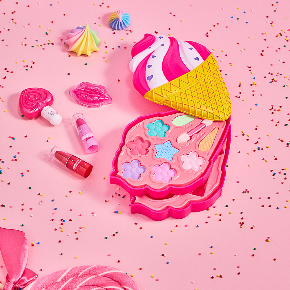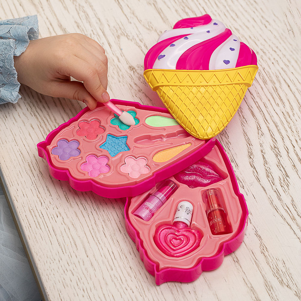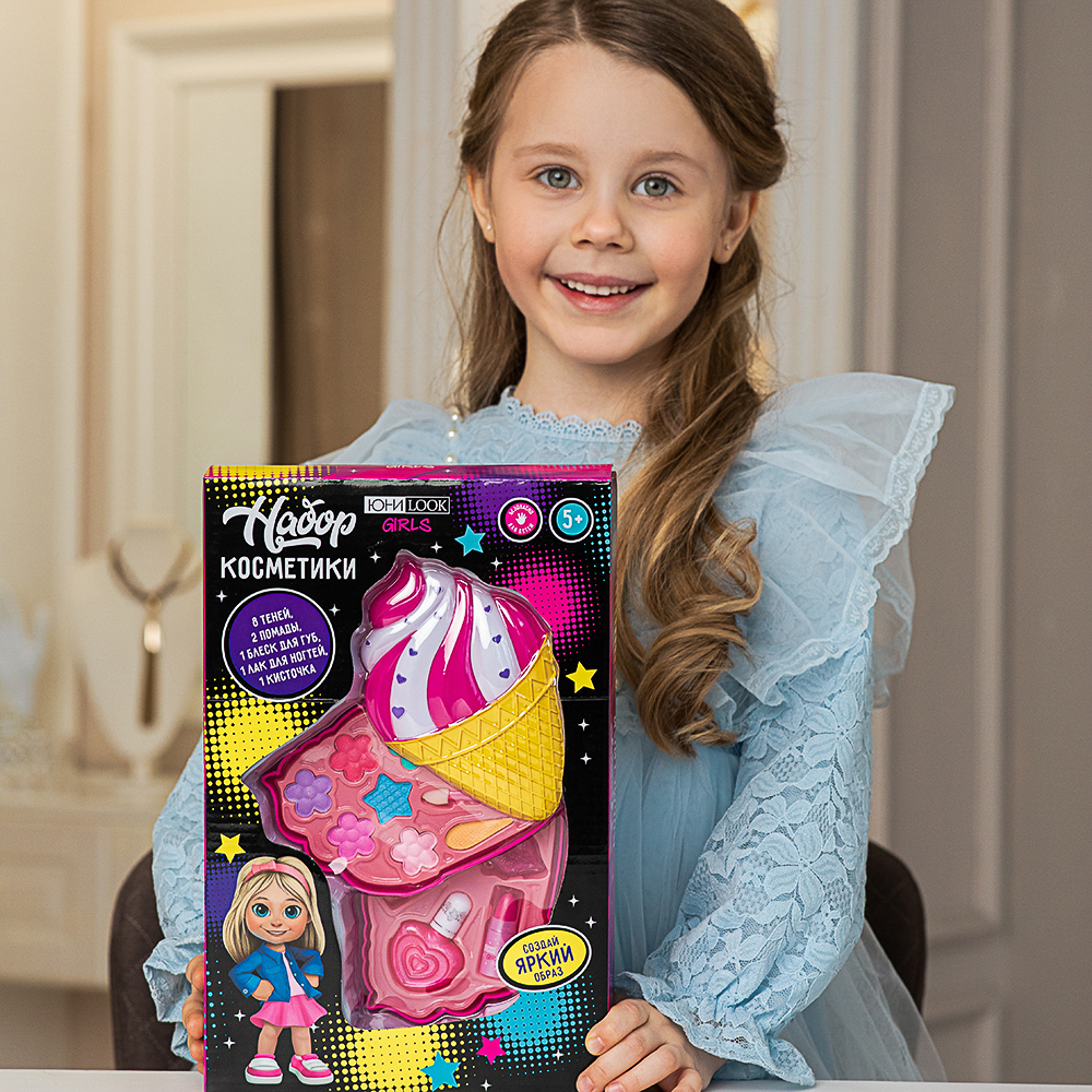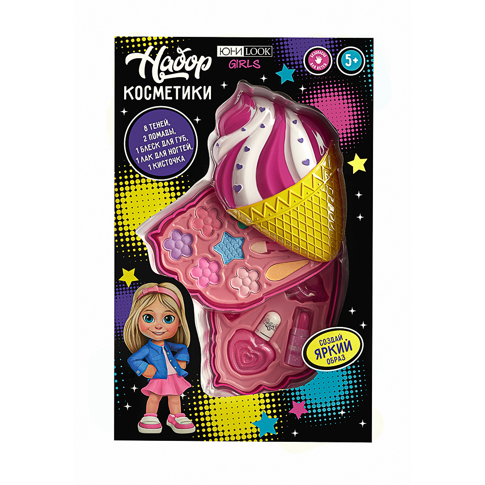Создание макияжа – это творческий процесс, который нравится всем девочкам. Набор детской декоративной косметики в контейнере в форме мороженого поможет создать креативный образ и сделать подарок маленькой моднице. В процессе игры происходит развитие социальных навыков, фантазии и воспитание эстетического вкуса. Косметика для девочек безопасна для ребенка. Водорастворимая формула позволяет легко смыть косметику обычной водой. В комплекте: контейнер - 1 шт., тени для век - 8 шт., блеск для губ - 1 шт., помада для губ - 2 шт., лак для ногтей - 1 шт., кисточка - 1 шт. Размер упаковки: 28,8х19,5 см. Набор детской декоративной косметики ЮНИLOOK в подарок девочке – это радость и яркие эмоции!