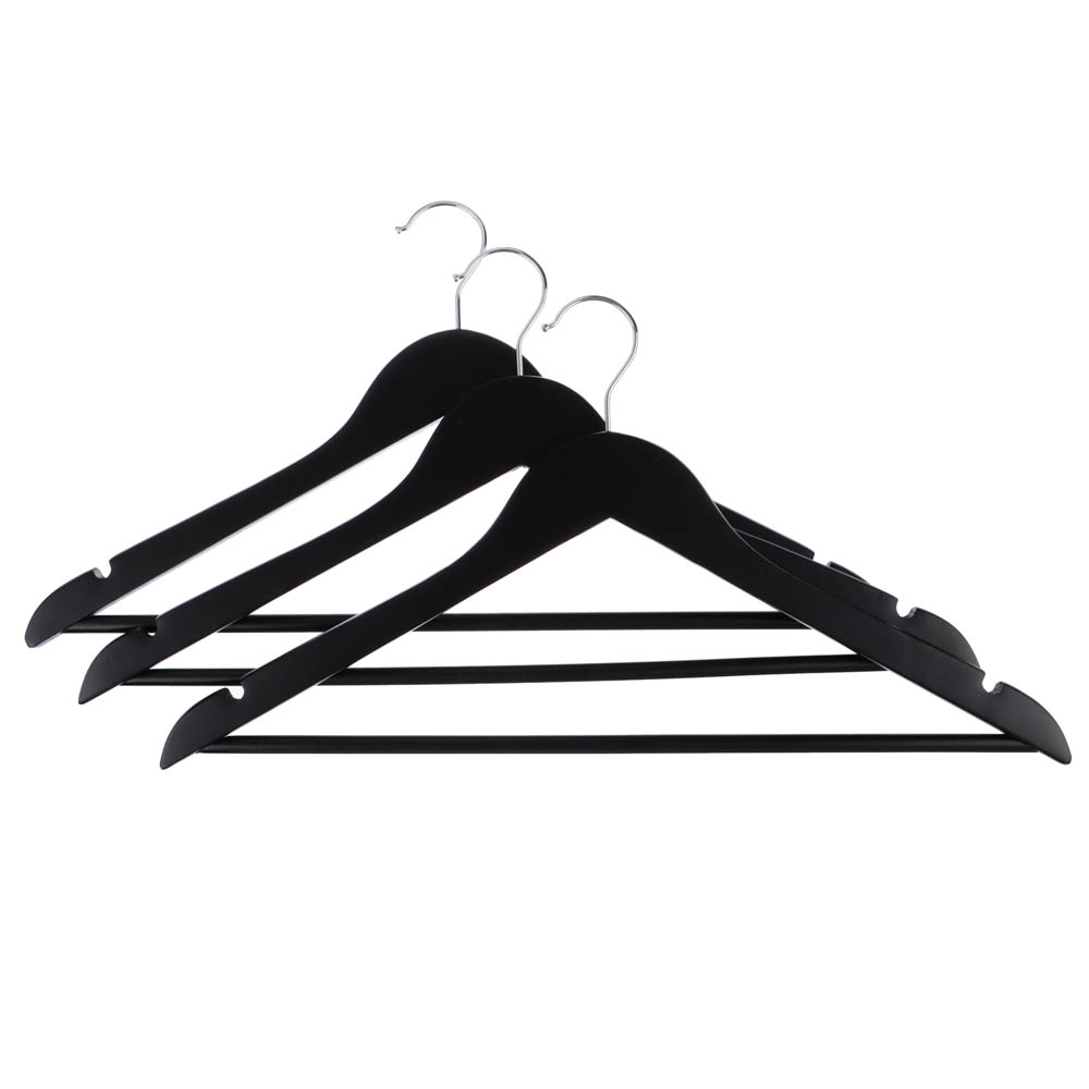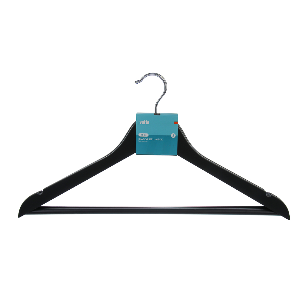 Набор вешалок для одежды VETTA включает три стильные и прочные модели длиной 45 см, изготовленные из высококачественного дерева с хромированными элементами. Чёрный цвет придаёт им элегантный и современный вид, а прочная конструкция надёжно поддерживает рубашки, жакеты и лёгкие пальто, предотвращая деформацию одежды. Такие вешалки станут не только практичным аксессуаром для гардероба, но и эстетичным элементом интерьера, сочетая долговечность, удобство и утончённый дизайн.