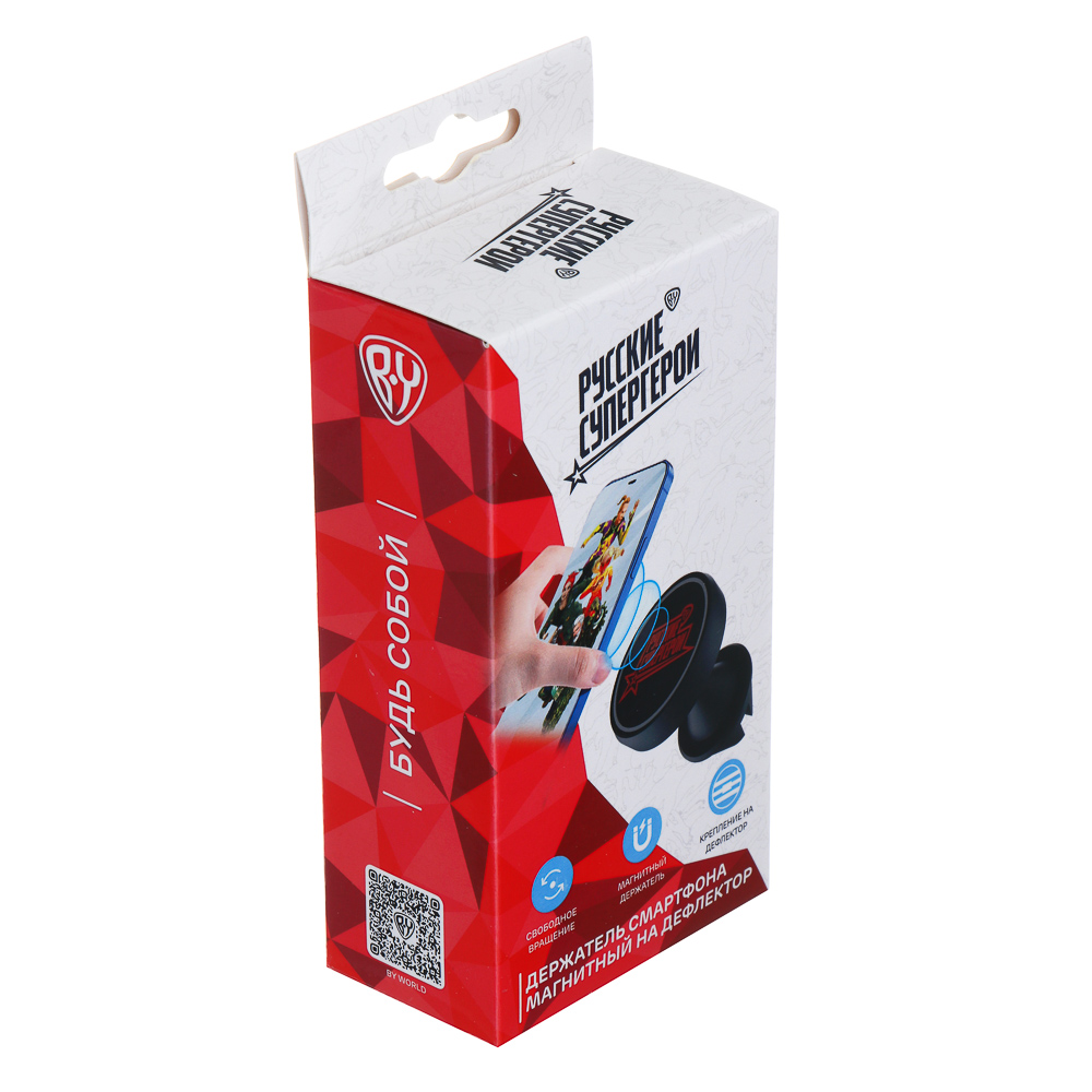 BY Русские Супергерои представляет магнитный держатель для смартфона, который крепится на дефлектор с помощью зажима. Этот аксессуар обеспечивает надёжную фиксацию вашего смартфона и не мешает обзору во время движения. Благодаря стильному дизайну и яркому оформлению, этот держатель станет отличным дополнением к интерьеру вашего автомобиля и подчеркнёт вашу индивидуальность.