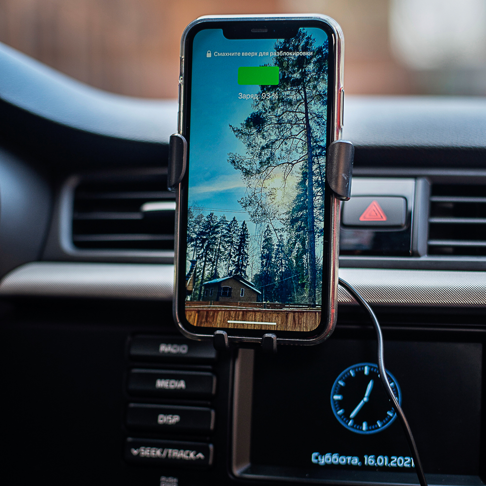 Держатель телефона на дефлектор с беспроводной зарядкой-это устройство, которое обеспечит комфортное вождение в любых условиях. Автомобильный аксессуар не скрипит, не издает треска и адаптируется к смене температур. Компактный держатель для телефона станет отличной заменой держателю на панель. Имеет универсальный размер, отлично держит Ваш смартфон при езде по неровным поверхностям. Настоящая находка как для мужчин, так и для автоледи. Держатель станет оригинальным подарком для любимых и близких, а также порадует и Вас самих!
