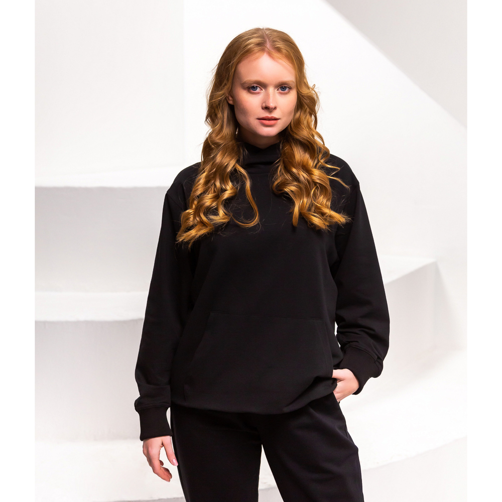 Комфортная толстовка с капюшоном из плотного хлопка высокого качества. Внешняя сторона материала бархатистая и приятная на ощупь, внутренняя сторона имеет мелко петельчатую фактуру - имитацию ворса, который обеспечивает сохранение тепла. Материал очень практичный в носке благодаря добавлению синтетических волокон: не теряет форму и цвет даже после множества стирок, быстро высыхает, не требует глажения. Очень удобный капюшон с захлестом, закрывающим шею. Объемный карман-кенгуру впереди. Эластичные манжеты и низ. Актуальный свободный крой. Можно носить как с джинсами, так и с юбками. Отлично сочетается с трикотажными брюками и футболками из ассортимента BY, а также легко впишется в любой гардероб благодаря своей универсальности.