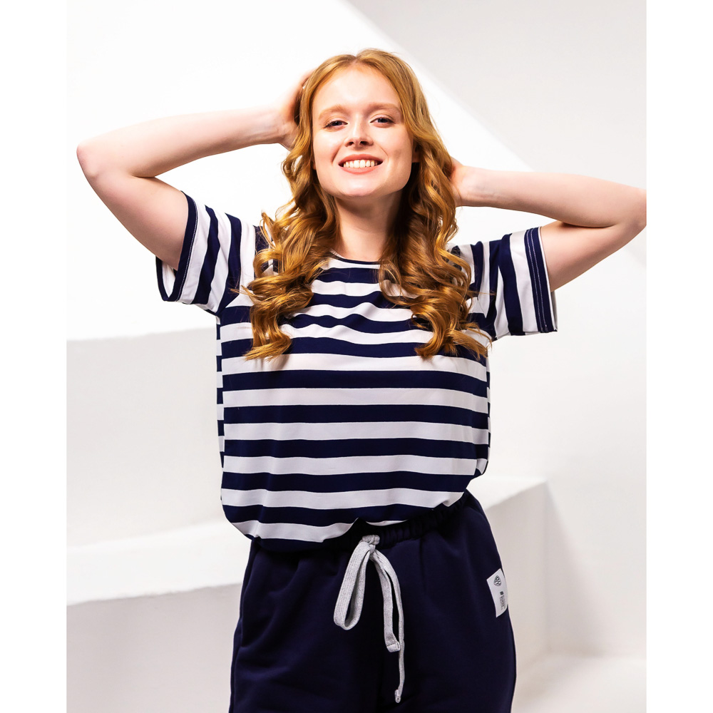 Футболка женская BY «Hero» темно-синий цвет в белую полоску размер S – базовый аксессуар, который необходим в гардеробе каждой женщины. Имеет комфортную свободную посадку и прямой крой. Выполнена из хлопка премиум качества, обладает дышащими свойствами, поэтому подходит как для ежедневных прогулок, так и для спортзала. Классическая модель с округлым вырезом горловины сочетается с любой одеждой и аксессуарами. Долго сохраняет первозданный вид при стирке на бережном режиме в холодной воде.