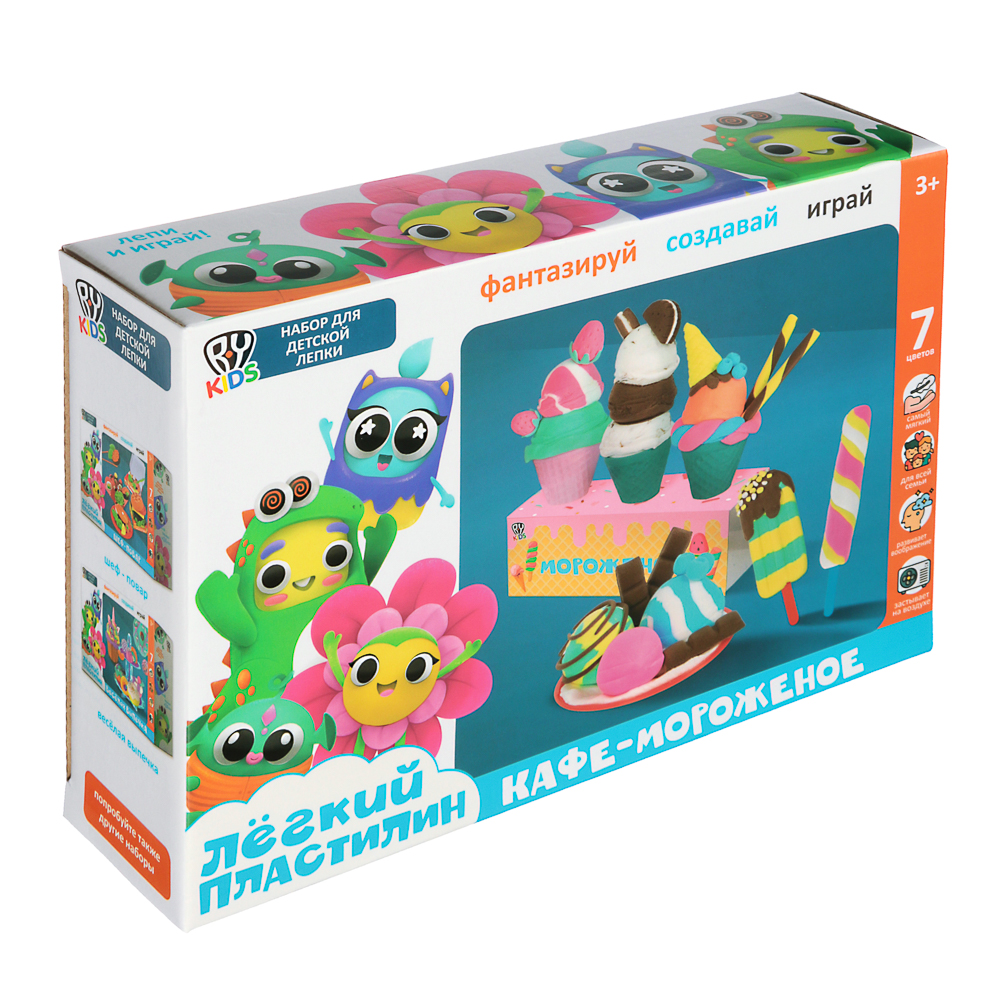 С кулинарным набором легкого пластилина BY ребенок почувствует себя настоящим поваром!В набор входит яркая инструкция, которая подробно научит создавать роллы, мороженое или бургер!В ассортименте представлено 3 набора:• Веселая выпечка• Шеф-повар• Кафе-мороженоеВ каждом наборе вы найдёте все необходимые ингредиенты:• 7 цветов легкого пластилина,• а также аксессуары, необходимые для приготовления и сервировки.Легкий пластилин BY – это уникальный материал: воздушный, с приятной бархатистой текстурой.Игра с легким пластилином развивает моторику и воображение ребенка: он упругий, отлично лепится и держит форму, играть с ним – одно удовольствие!Уже через 12 часов поделки полностью застывают и превращаются в бархатистые фигурки, которыми можно играть в сюжетные игры. Вы можете использовать легкий пластилин повторно – для этого храните его закрытым.