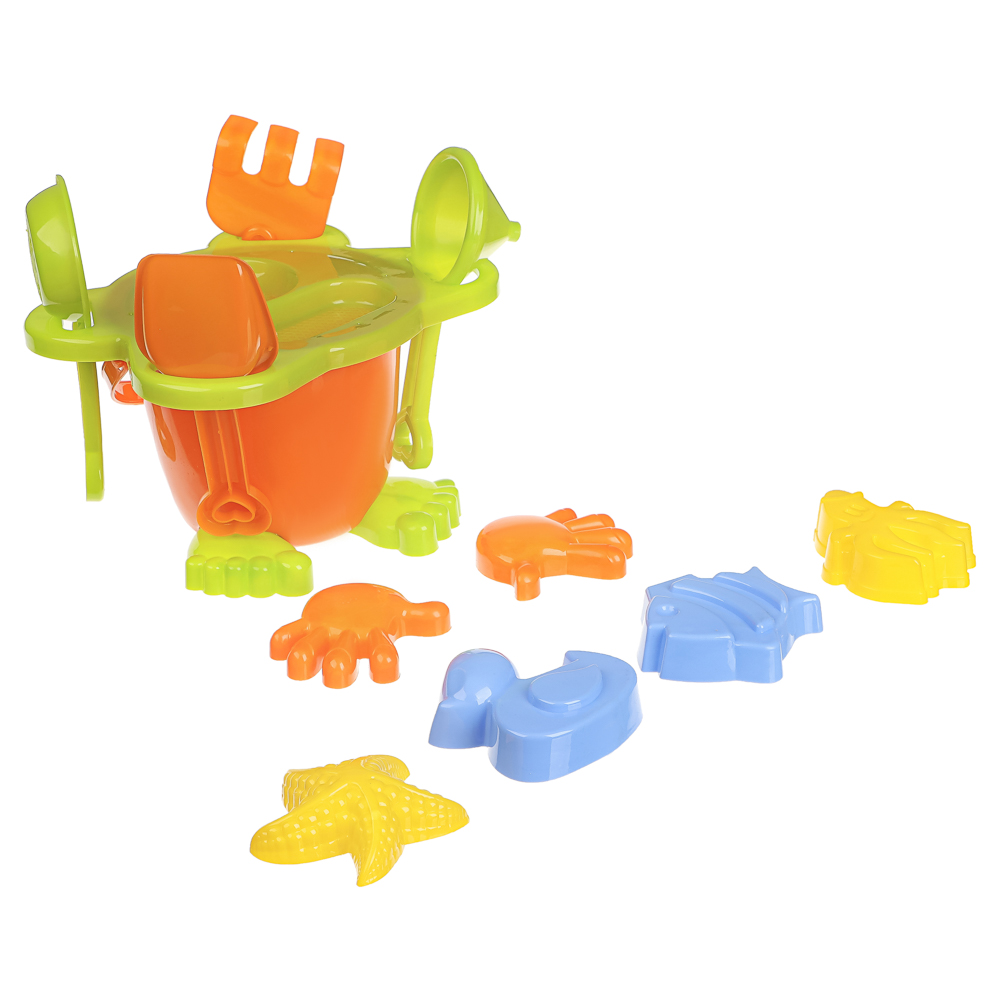 Яркий и увлекательный набор для игры в песке "Дружок" ИГРОЛЕНД подарит ребёнку часы увлекательной игры. Ведёрко объемом 1 л в форме забавного человечка с крышкой и красочными наклейками станет любимым игровым аксессуаром, а удобные лопатка и грабли помогут строить замки и рыть тоннели. Сито и воронка позволят экспериментировать с песком и водой, а фигурные формочки сделают игру ещё интереснее. Безопасные материалы, компактный размер и продуманный дизайн делают этот набор идеальным для детей от 3 лет.