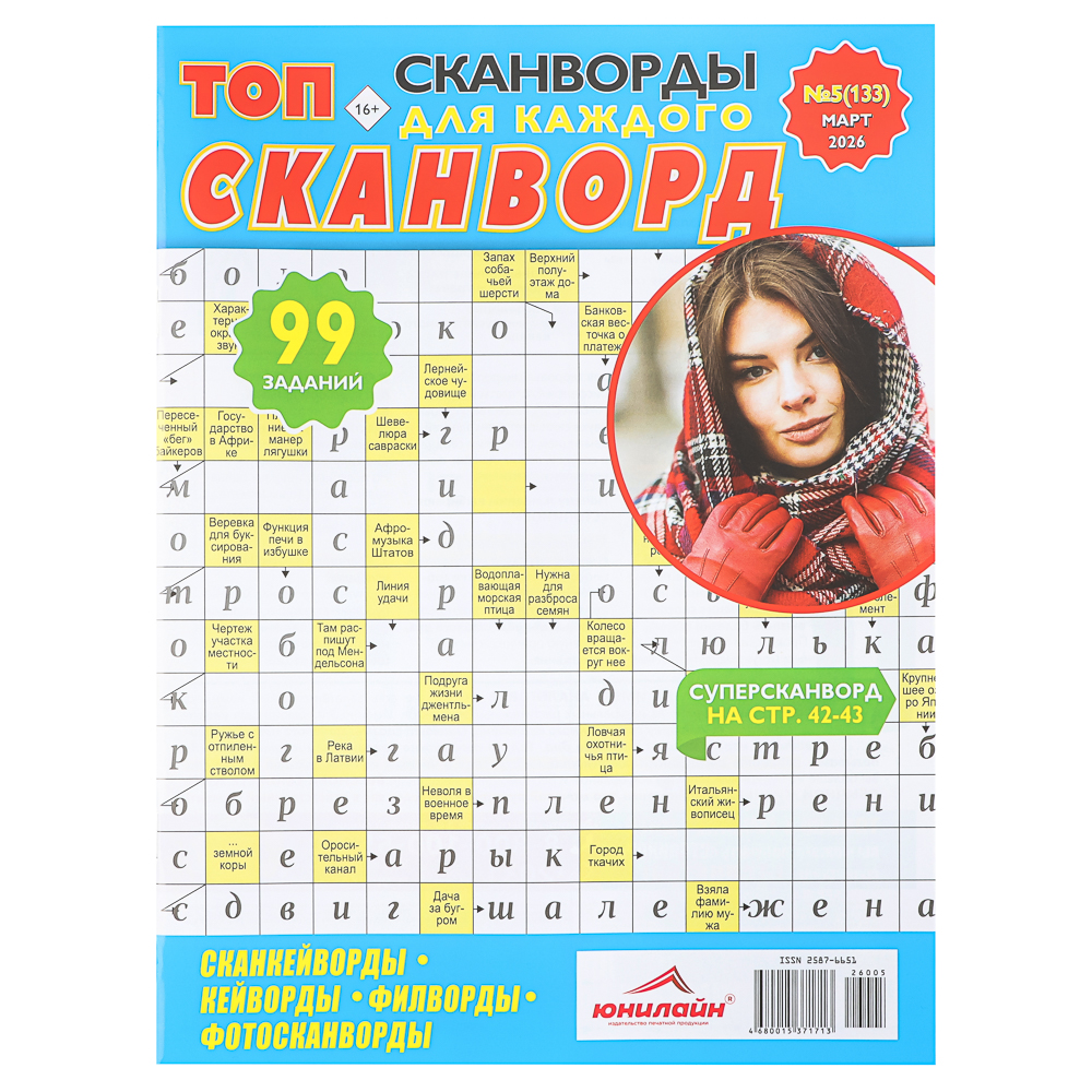 Книга ТОП-сканворд размером 21×29,7 см, 84 страницы, представляет собой сборник увлекательных головоломок и логических задач. Задания способствуют развитию внимательности, логического мышления и концентрации, а разнообразие кроссвордов делает книгу интересной для людей разных возрастов. Большой формат A4 обеспечивает удобство при решении головоломок и комфортное размещение на столе, а качественная печать страниц делает работу с книгой приятной и наглядной. Идеальный вариант для досуга, тренировки мозга и развития умственных способностей.