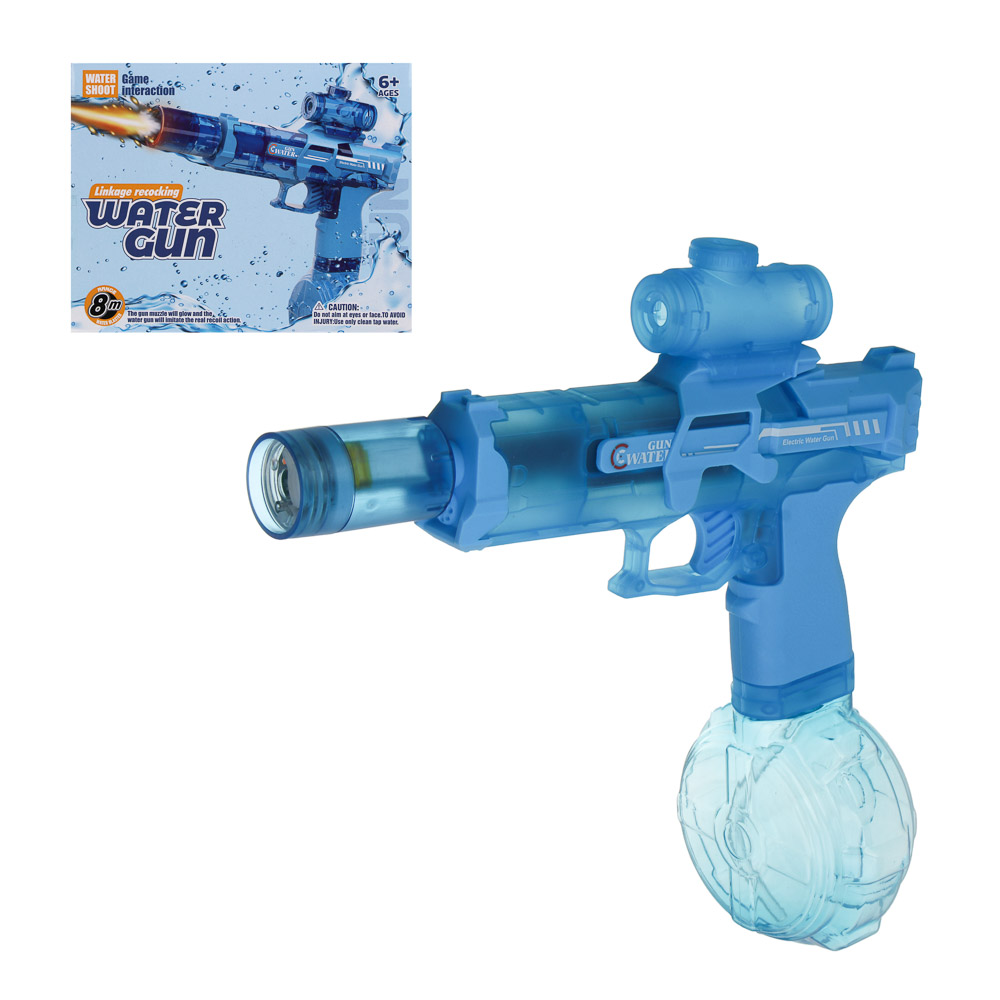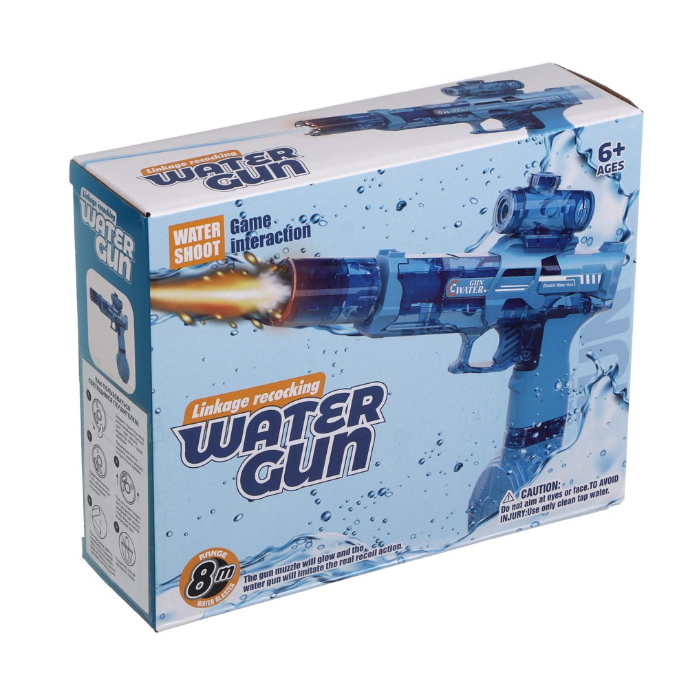 Электрический водный пистолет с АКБ, объем резервуара 320 мл, с вибрацией и световыми эффектами – это высокотехнологичное оружие для продвинутых бойцов. Он сочетает в себе мощную электрическую помпу, световые эффекты, тактильную вибрацию и стильный светящийся глушитель, создавая полное ощущение боевого гаджета из будущего, а также делая игру максимально реалистичной и динамичной. Автоматическая система подачи воды обеспечивает непрерывную стрельбу мощной струёй без ручной подкачки. Дальность полёта струи до 8 метров. Прочный корпус из полипропилена и устойчив к брызгам и активной игре. Для детей старше 6-ти лет.