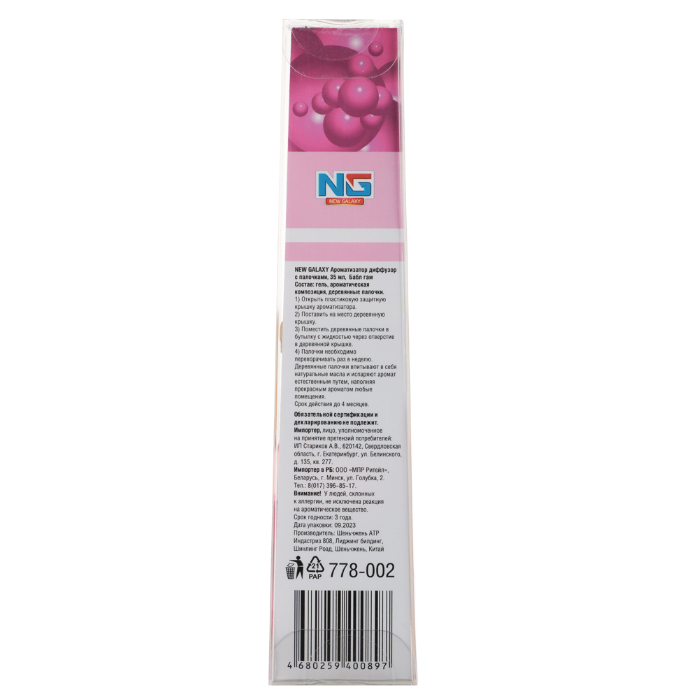 Нужно создать приятный фоновый аромат в ванной, на кухне или гостиной? Ароматизатор диффузор с палочками с ароматом бабл гам (778-002) легко справится с этой задачей. Вставьте пористые палочки в изящный стеклянный флакон с парфюмированной жидкостью и наблюдайте, как запах заполняет пространство комнаты. Интенсивность запаха зависит от количества используемых палочек. Объема одной бутылочки хватает на 1 месяц использования.