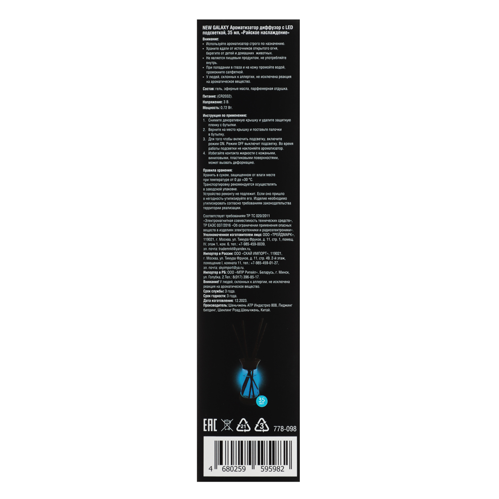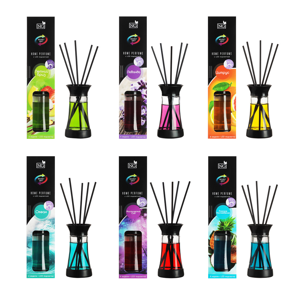 Нужно создать приятный фоновый аромат в ванной, на кухне или гостиной? Ароматизатор диффузор NEW GALAXY с палочками с выбранным ароматом и подсветкой легко справится с этой задачей. Вставьте пористые палочки в изящный стеклянный флакон с парфюмированной жидкостью и наблюдайте, как запах заполняет пространство комнаты. Интенсивность запаха зависит от количества используемых палочек. Объема одной бутылочки хватает на 1 месяц использования.