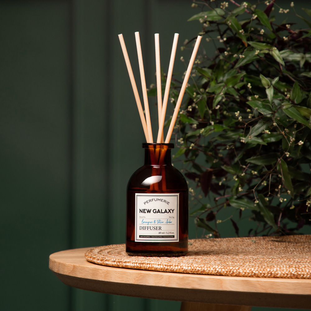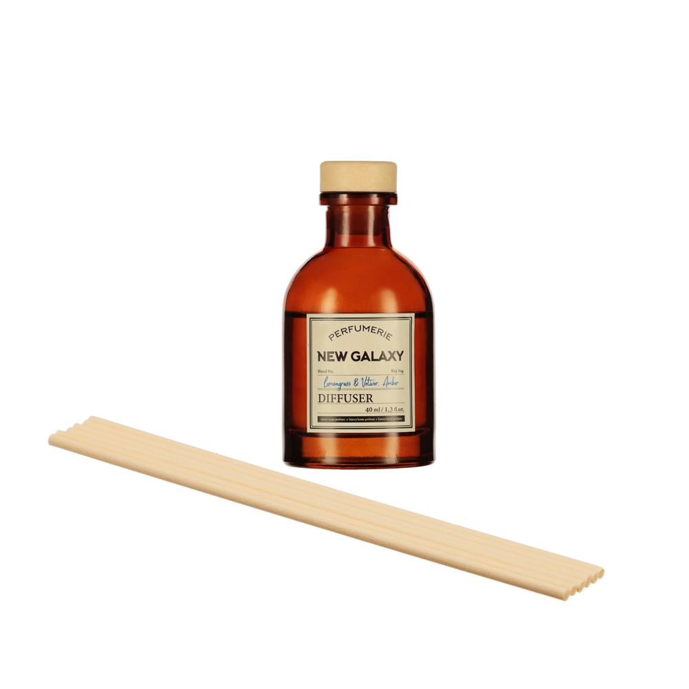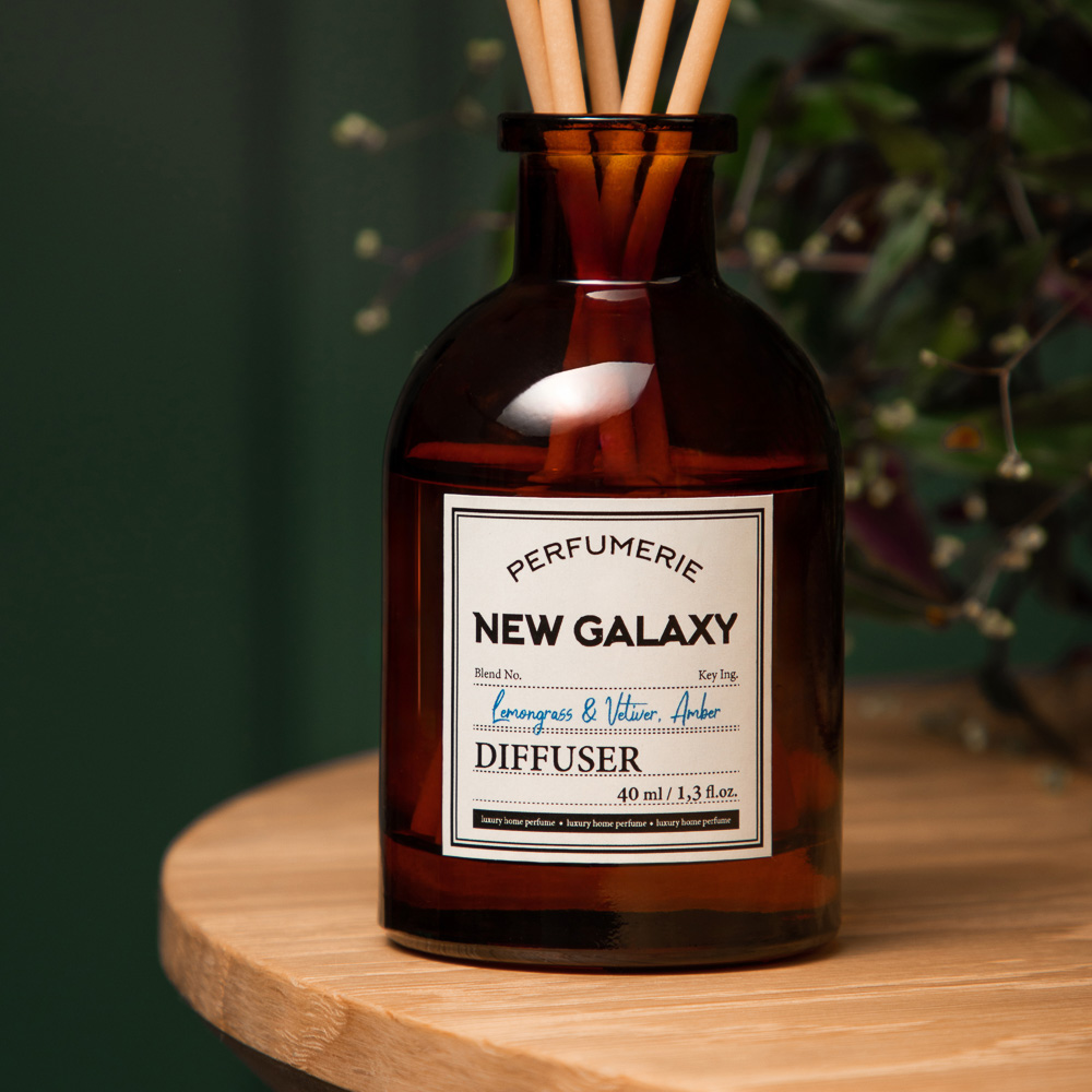 NEW GALAXY Диффузор Perfumerie, Lemongrass & Vetiver, Amber — уникальный продукт, который подарит вашему дому атмосферу уюта и комфорта. Диффузор относится к древесно-фужерной группе ароматов, что делает его идеальным выбором для любого помещения. Верхние ноты лемонграсса придают ему свежий и яркий аромат, а средние ноты ветивера добавляют глубину и насыщенность. Базовые ноты амбры оставляют после себя тёплый и уютный шлейф. Объём диффузора составляет 40 мл, что обеспечивает длительное использование продукта. Диффузор станет отличным выбором для тех, кто ценит качество и комфорт. Он поможет создать уютную атмосферу в вашем доме и подарит приятные эмоции.
