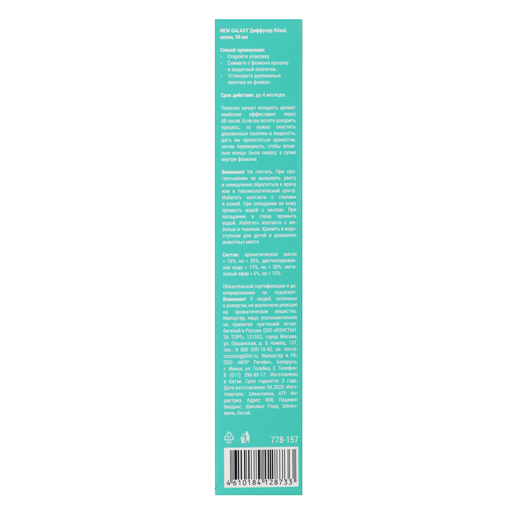 Погрузитесь в атмосферу гармонии с изысканными ароматическими композициями, созданными для истинных ценителей уюта. В ассортименте представлены свежие и завораживающие варианты: прохладный океан, таинственный мистический сад, лёгкий летний бриз и бодрящий цитрус. Каждый аромат тщательно подобран, чтобы подарить вам незабываемые ощущения и создать нужное настроение. Формула диффузора сочетает насыщенное ароматическое масло (15-30%), очищенную дистиллированную воду (15-30%) и метиловый эфир (5-15%), что обеспечивает стойкое и равномерное распространение аромата без резких нот. Объема 50 мл хватит надолго, наполняя ваш дом или офис приятным и ненавязчивым благоуханием.
