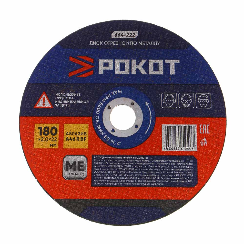 Отрезной диск по металлу РОКОТ 180х2,0х22 мм применяется совместно с УШМ с максимальной производительностью в 8600 об./мин и скоростью 80 м/с. Используется во монтажных работах, в строительстве, производстве и ремонте. Абразив A46 R BF с электрокорундом и бакелитовой связкой обладает высокой прочностью, износостойкостью, долговечностью, устойчив к истиранию. Диск не ломается, не деформируется, имеет долгий ресурс службы.