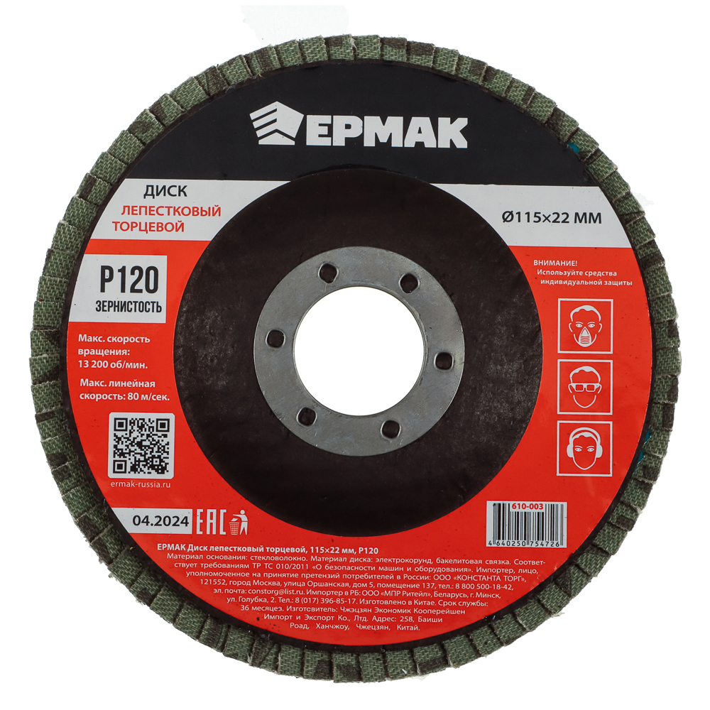 Лепестковый торцевой диск ЕРМАК 115x22 мм со степенью зернистости p120 предназначен для использования совместно с УШМ. Диск обладает средней степенью зернистости и подходит для быстрой и качественной обработки поверхностей. Обеспечивает оптимальный баланс между грубой черновой и финишной обработкой. Максимальная скорость вращения – 13200 об/мин. Максимальная линейная скорость – 80 м/сек. Материал диска: электрокорунд с бакелитовой связкой. Обладает высокой износостойкостью, имеет увеличенный ресурс службы.