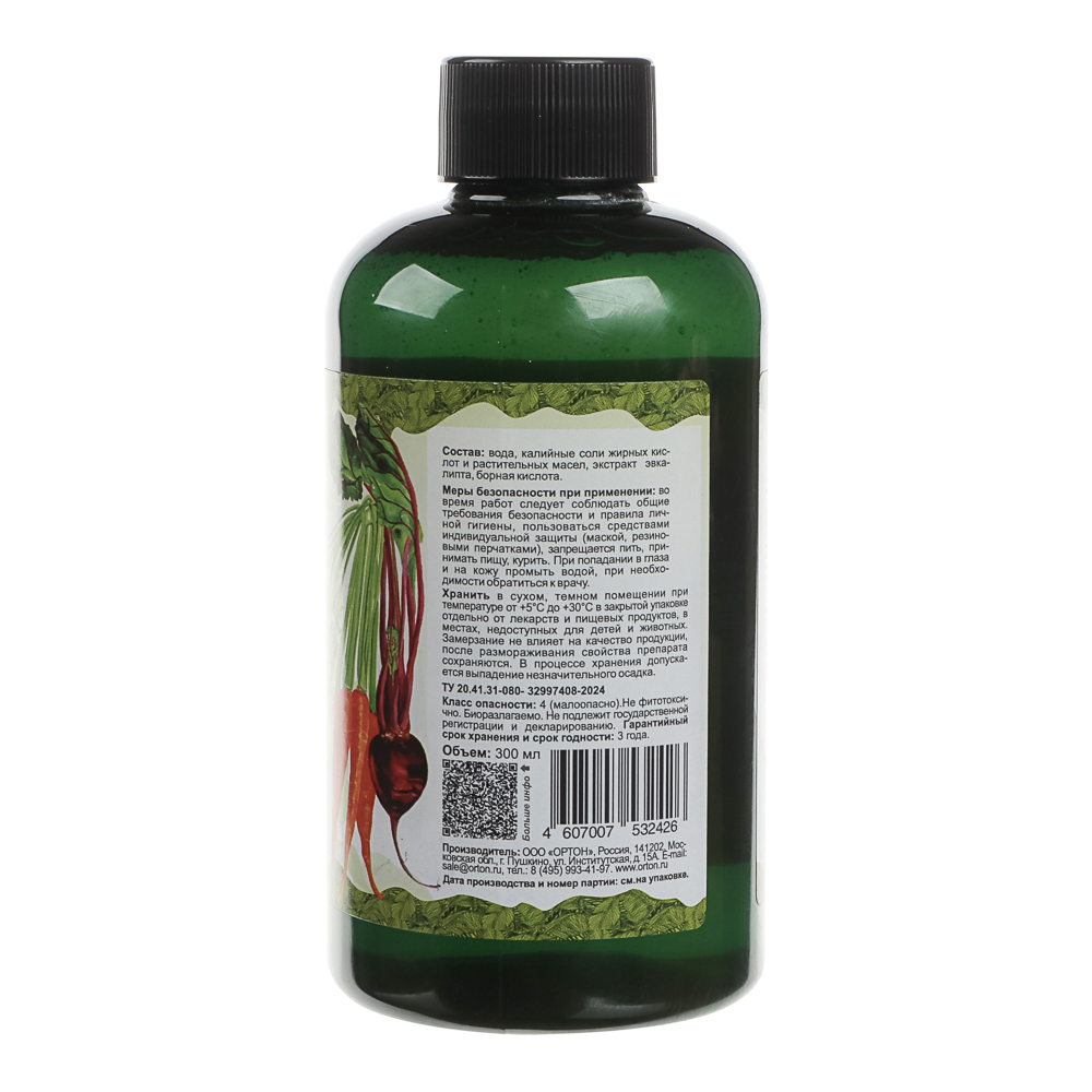 Биоинсектицид «Зелёное мыло» Ортон, 300 мл – это натуральный и безопасный способ защитить растения от вредителей без химического запаха и остатков. Это концентрат, который разводится водой в пропорции 1:10, одной бутылки хватит на десятки обработок. Действует мягко, но эффективно: покрывает листья тонкой плёнкой, блокируя дыхание насекомых: тли, клещей, белокрылок, червецов и других мелких вредителей. При этом не вредит пчёлам, божьим коровкам и другим полезным насекомым, если применять в сухую погоду и вечером. Формула усиленная – содержит экстракт эвкалипта, который усиливает антисептические свойства и помогает предотвратить развитие грибковых заболеваний после повреждений. Подходит для всех культур. Не вызывает ожогов, легко смывается дождём или поливом, не накапливается в плодах. Просто разведите, опрыскайте, и ваши растения останутся чистыми, зелёными и здоровыми.