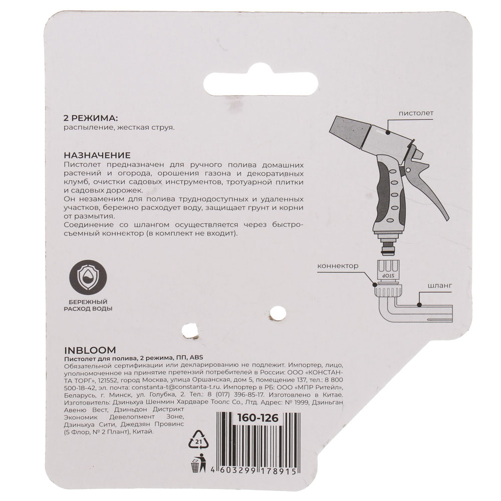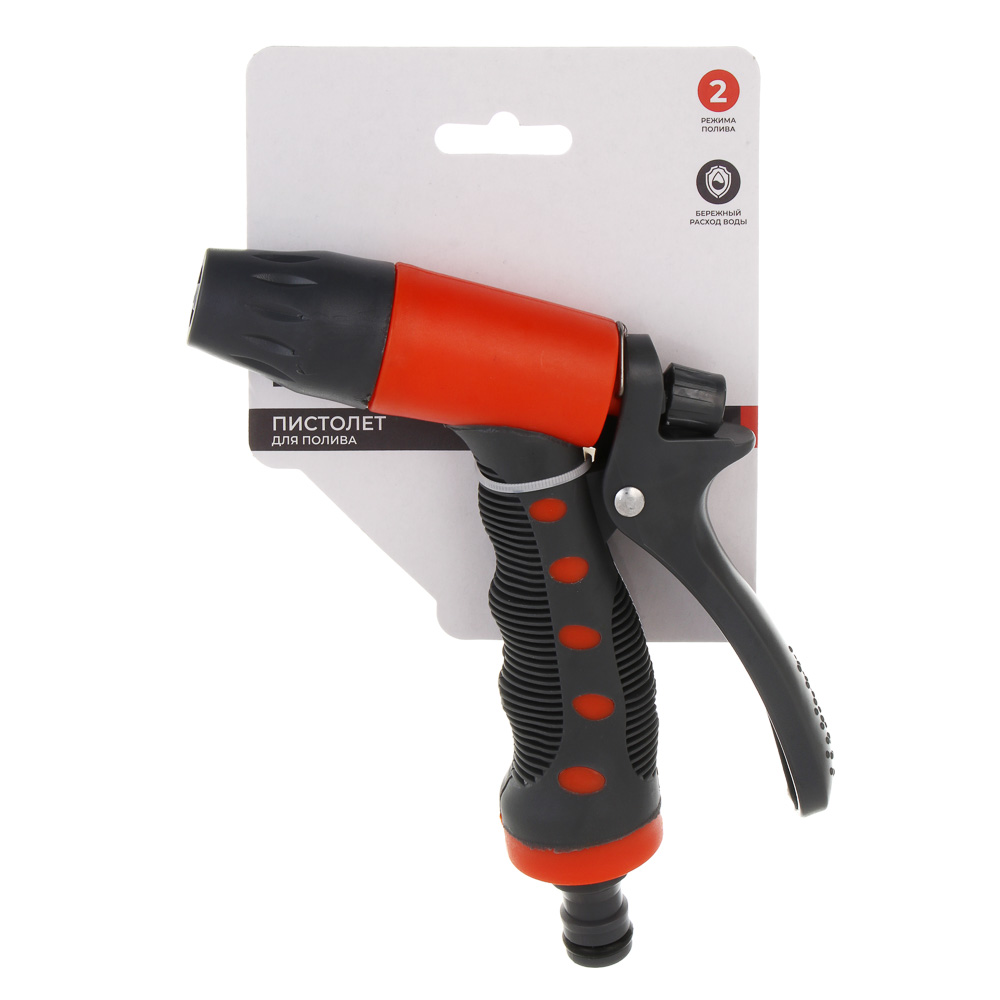 Пистолет разбрызгиватель с регулятором напора воды — незаменимый аксессуар на приусадебном участке в весенне-летний сезон. С его помощью поливать растения можно разными способами — от мягкого распыления до мощной струи. Пистолет разбрызгиватель с регулятором напора воды получил эргономичный пластиковый корпус, который удобно ложится в руке и обеспечивает комфортный длительный полив.