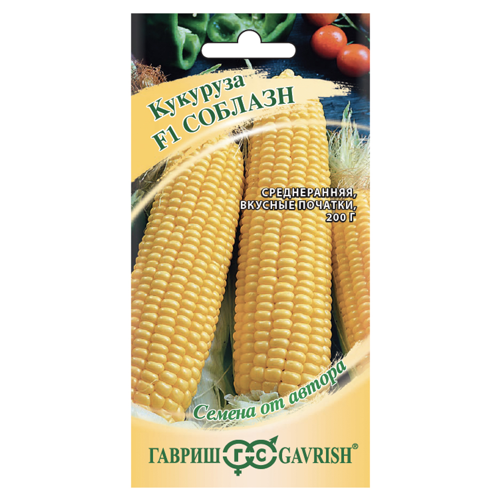 Кукуруза сахарная F1 «Соблазн» – сладкая, сочная и нежная, как в детстве! Ранний гибрид (75-79 дней от всходов до технической спелости) – настоящий подарок для любителей сладкой кукурузы. Растение высотой 165-175 см формирует крупные, цилиндрические початки длиной 18-19 см и диаметром 4-5 см, массой около 200 г. Зерно ярко-желтое, удлиненное, с высоким содержанием сахара – технологические и вкусовые качества в молочной спелости просто превосходные. Кукуруза предпочитает легкие, плодородные, хорошо увлажненные почвы. Посев в грунт производят в мае на глубину 3–5 см по схеме 45х45 см. Урожайность початков – 6,7 кг/м², это значит, что вы получите щедрый урожай даже на небольшом участке. Идеальна для употребления в свежем виде, заморозки и консервирования, сохраняет сладость и сочность даже после термической обработки.